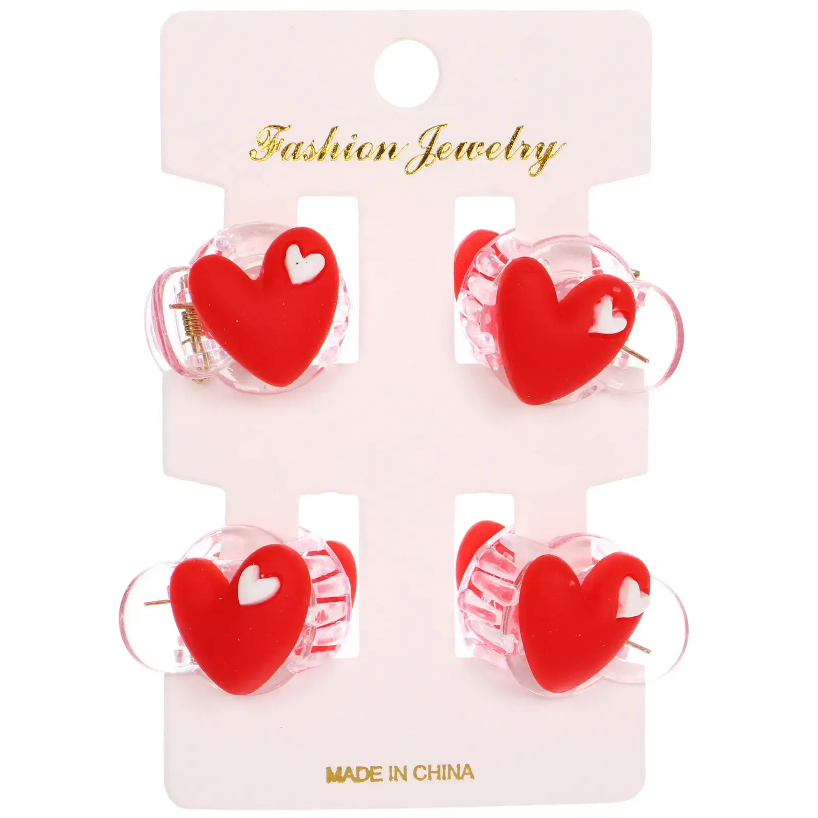 В комплект входят 4 заколки, каждая из которых имеет размер 2 см. Изготовлены из прочного пластика с металлическими элементами, они обеспечивают надежную фиксацию и долговечность. Заколки оформлены на картонной подложке с надписью «Fashion Jewelry», что делает их отличным подарком для маленьких модниц.