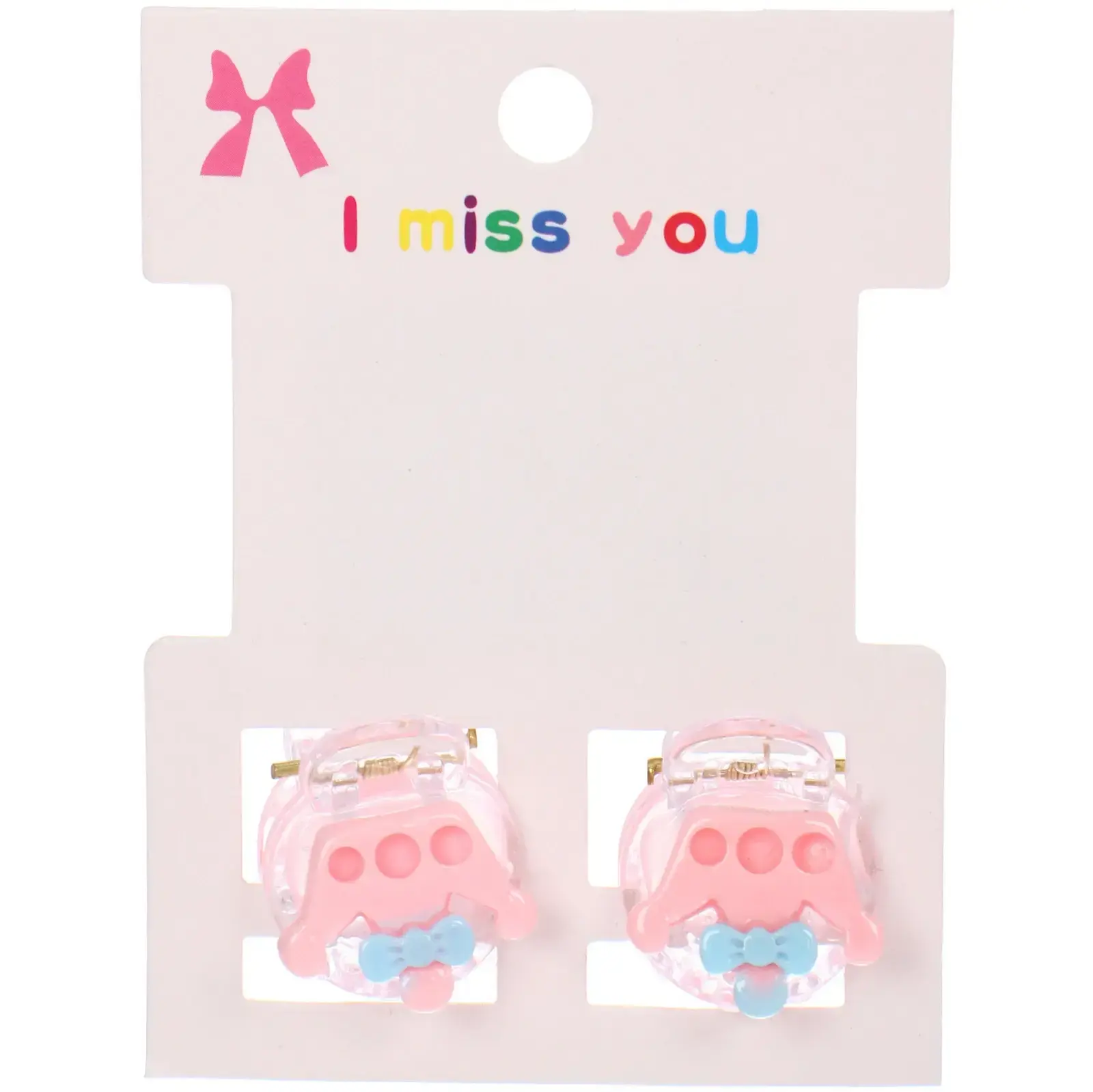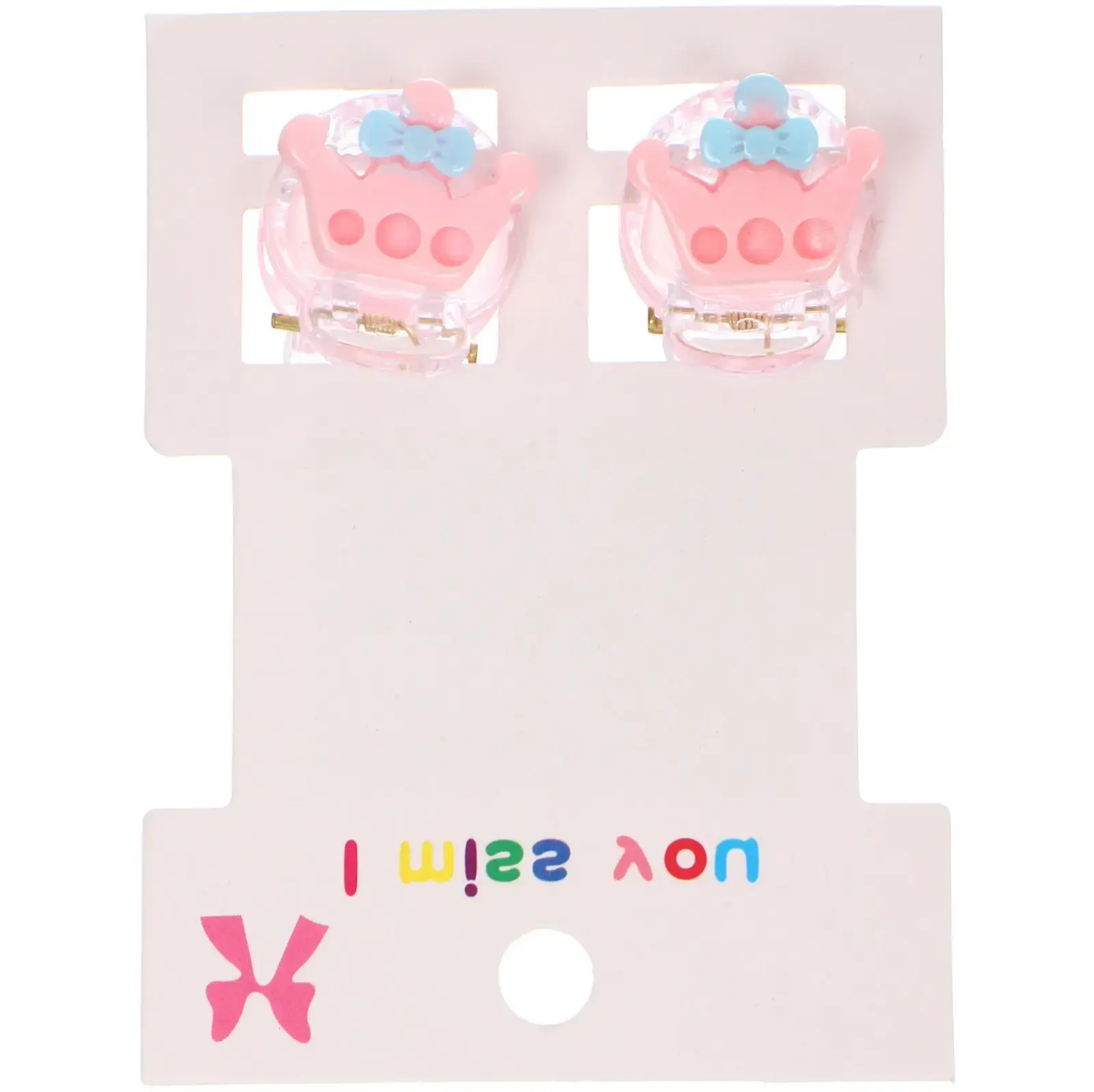 Заколки представлены в комплекте из двух штук на блистере, что делает их отличным подарком для девочек. Прозрачная основа и декоративные элементы в форме короны с бантиком добавляют оригинальности. Упаковка оформлена с учетом детской эстетики, что делает товар привлекательным для родителей и детей.