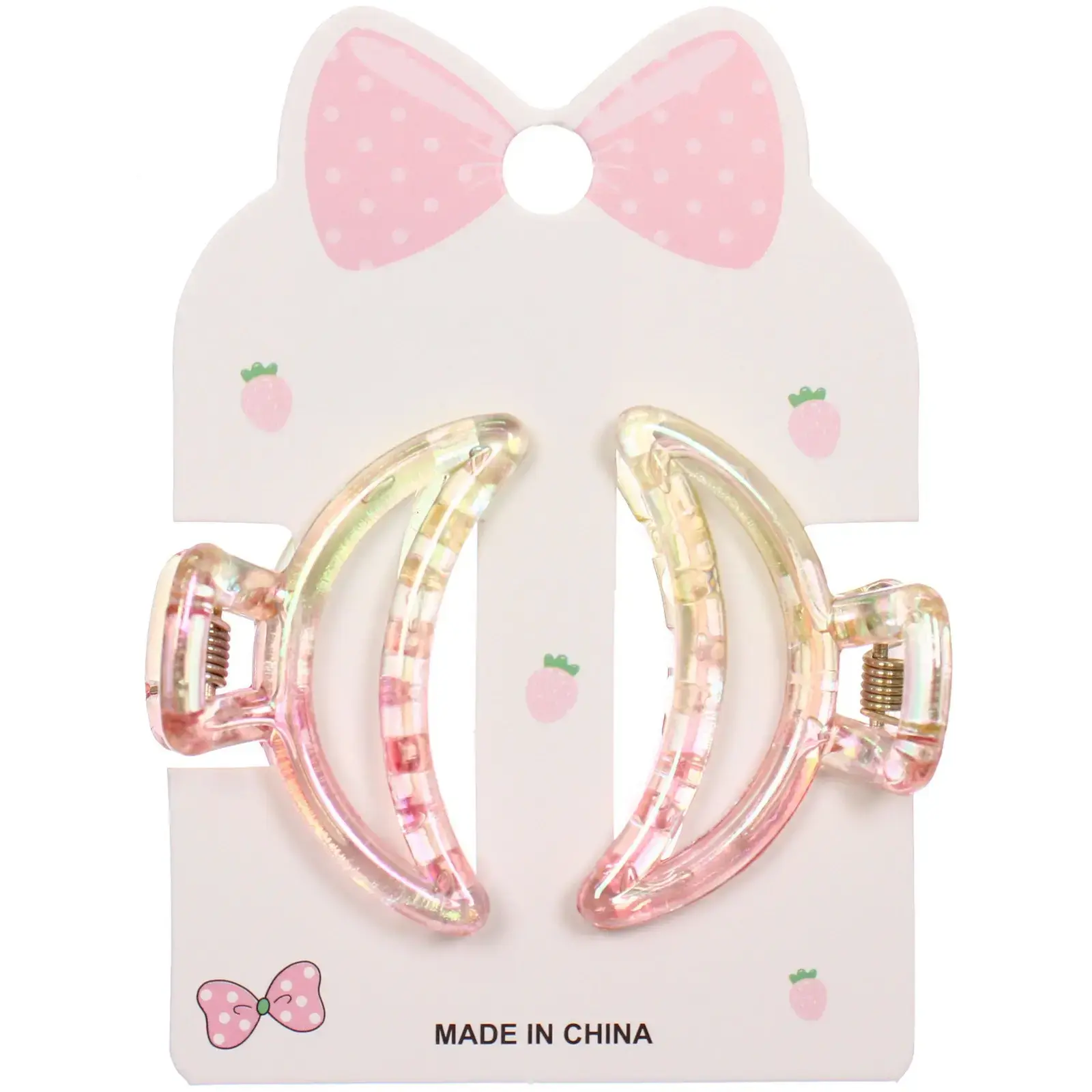 Каждая заколка имеет удобный механизм для захвата волос, что обеспечивает надежную фиксацию. Упаковка содержит 2 заколки, что делает их отличным выбором для подарка или личного использования. Заколки представлены в пастельных тонах с изображением клубники и бантика, что добавляет им игривости и очарования. Не упустите возможность добавить эти стильные аксессуары в свою коллекцию!
