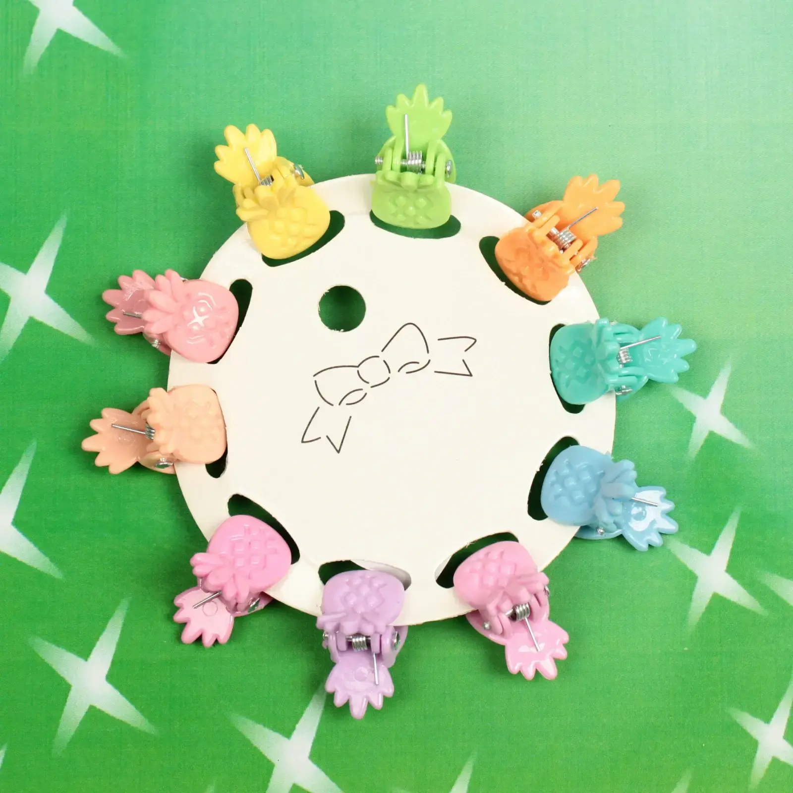 Заколки идеально подходят для тонких и средних прядей волос, что делает их универсальным аксессуаром для девочек. Они легко крепятся и снимаются, что позволяет быстро менять прическу в зависимости от настроения или случая. Набор состоит из 10 заколок, каждая из которых оформлена в виде ананаса, что добавляет игривости и веселья в повседневный стиль.