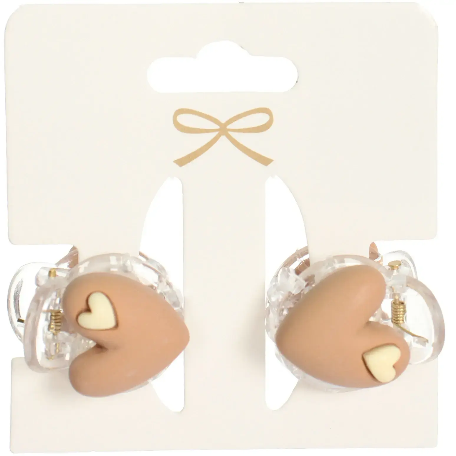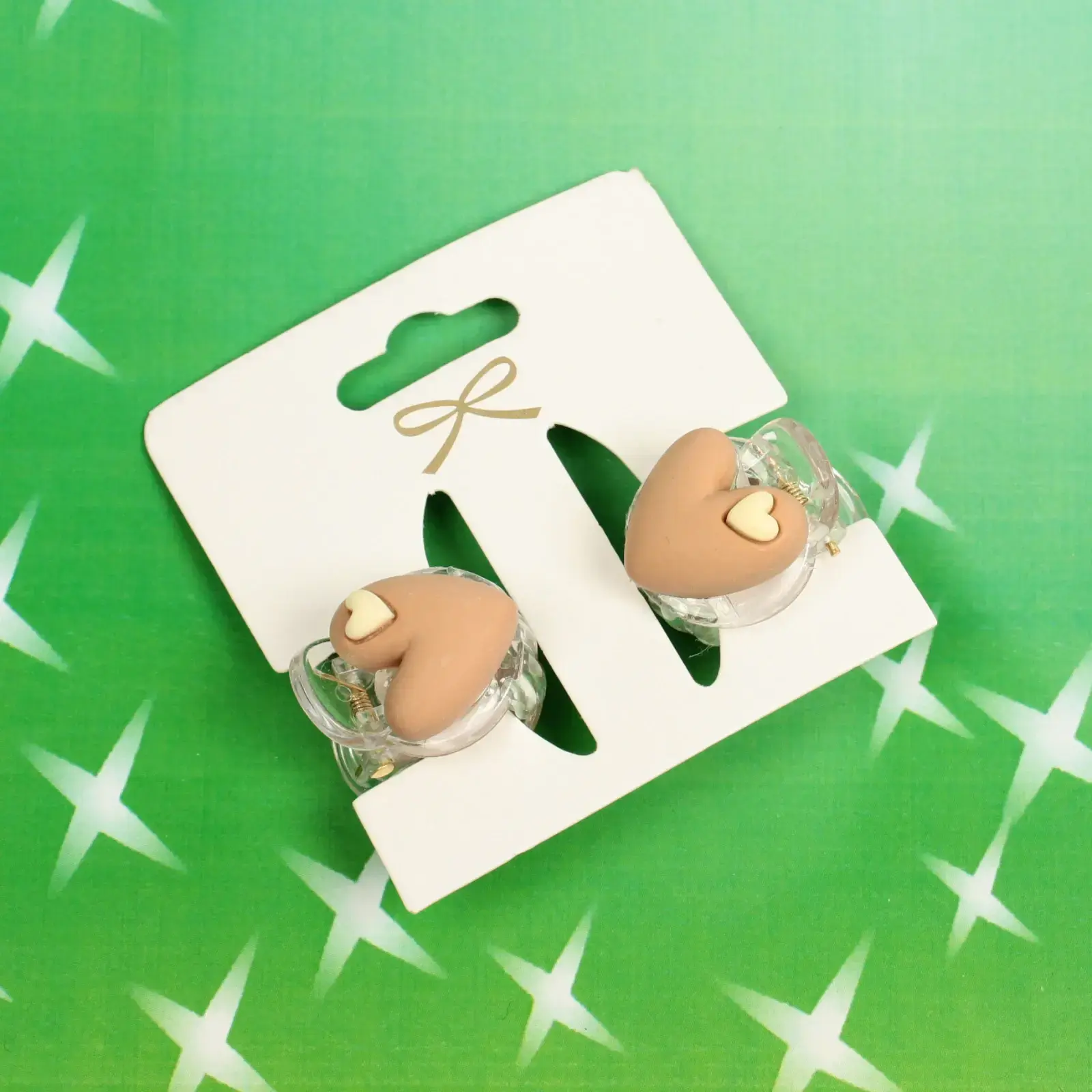 Заколки-крабы детские 'Chocolate Lolly', сердечки, пластик, 2.2 см