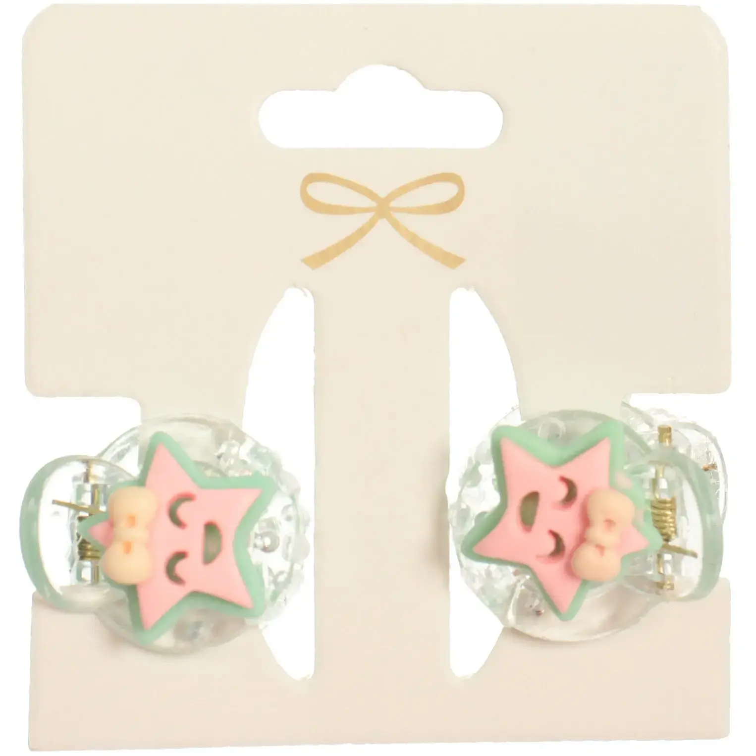 Заколки-крабы 'Little Lolly' детские, звездочки, 2.2см, пластик, розовый/зеленый