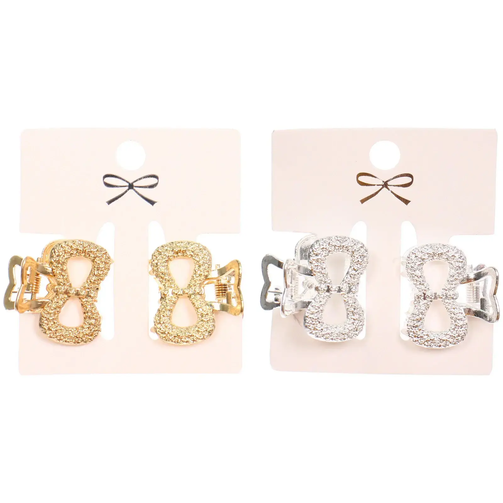 Заколки выполнены из качественного металла, что гарантирует их долговечность. Они представлены в двух цветах: золотом и серебристом, что позволяет легко сочетать их с различными нарядами. Упаковка с подвесом делает их удобными для хранения и демонстрации.