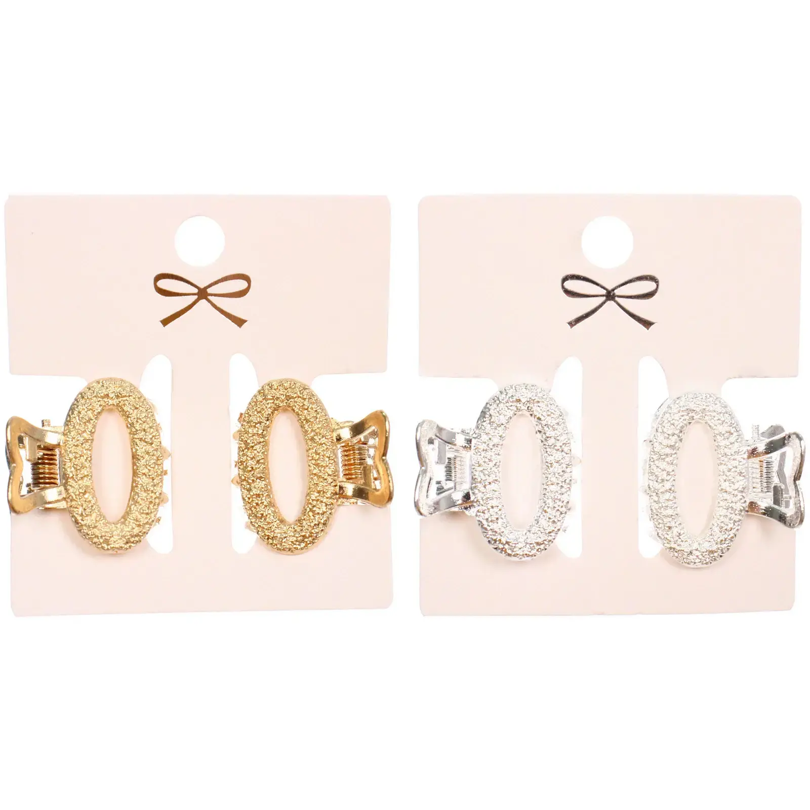 Заколки имеют овальную форму и выполнены из прочного металла с блестящей отделкой. Они представлены в комплекте из двух штук на картонной подложке с удобным отверстием для подвешивания. Эти заколки не только функциональны, но и станут стильным акцентом в вашем образе.