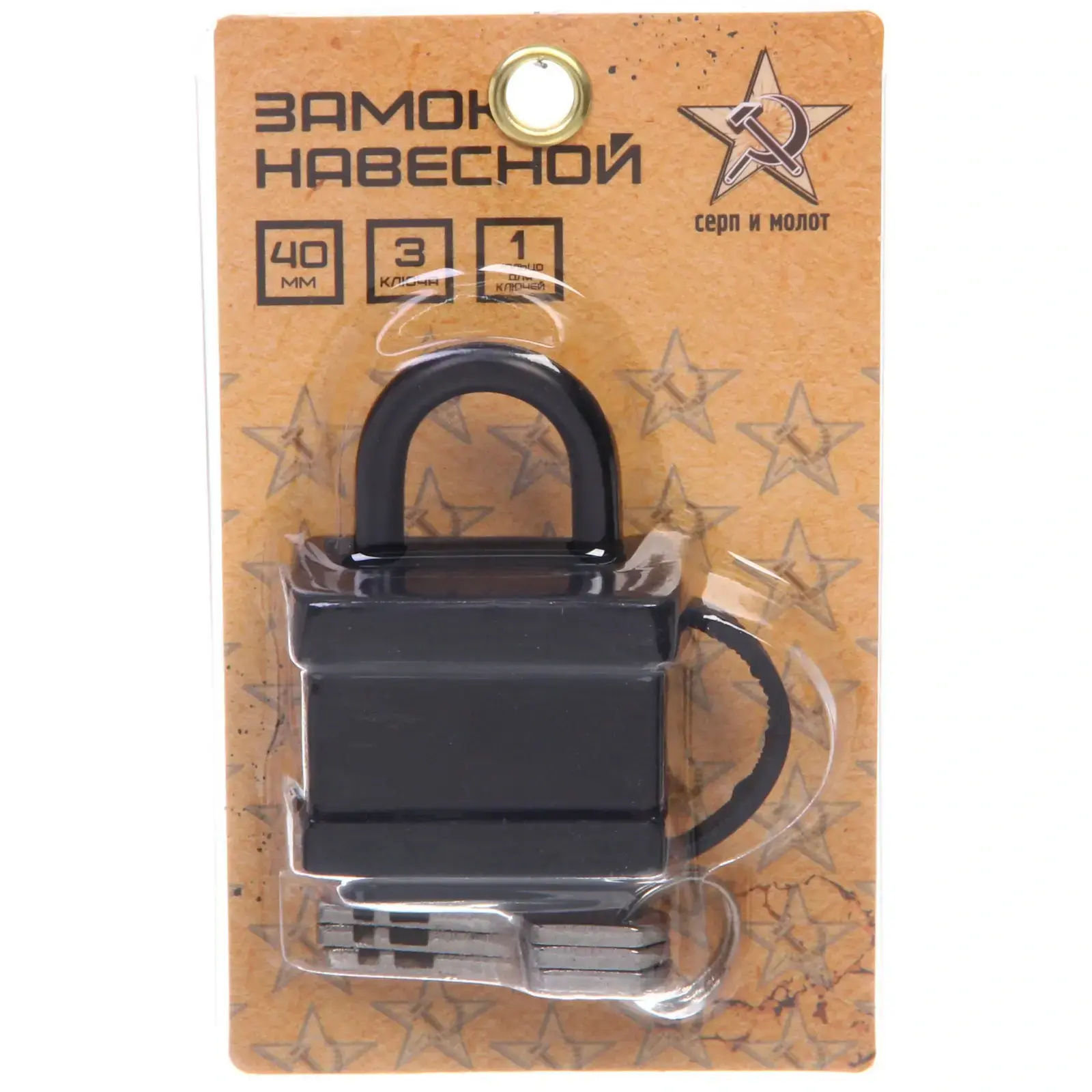 Замок навесной 40мм, черный, 'Серп и молот', 3 ключа, металлический