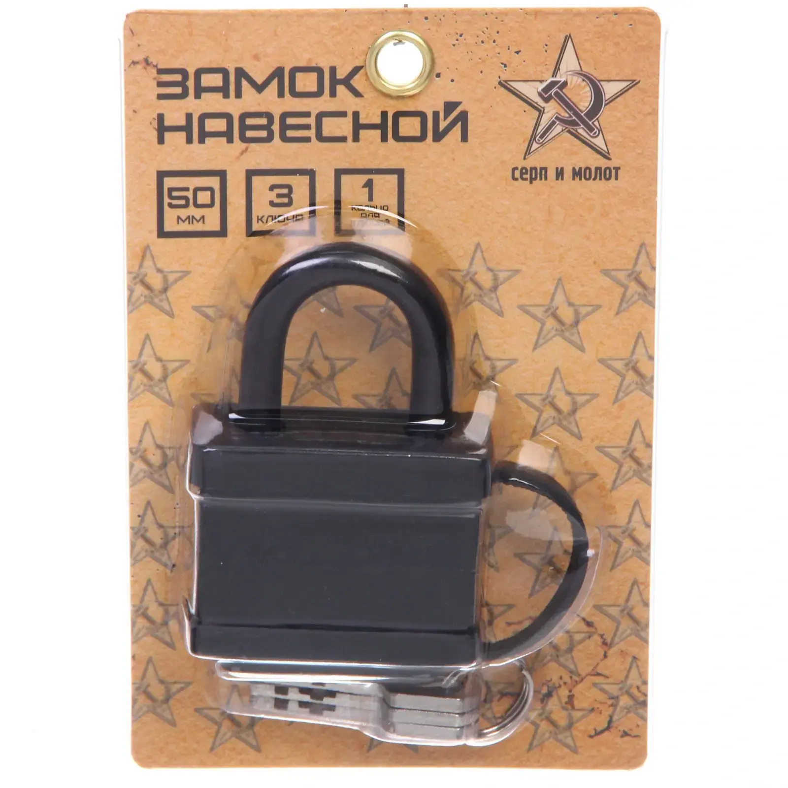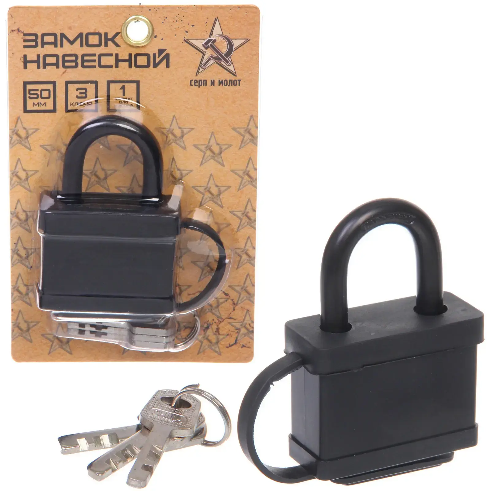 Замок навесной «Серп и молот» 50 мм, автоматический, 3 ключа, черный металл с уплотнителем
