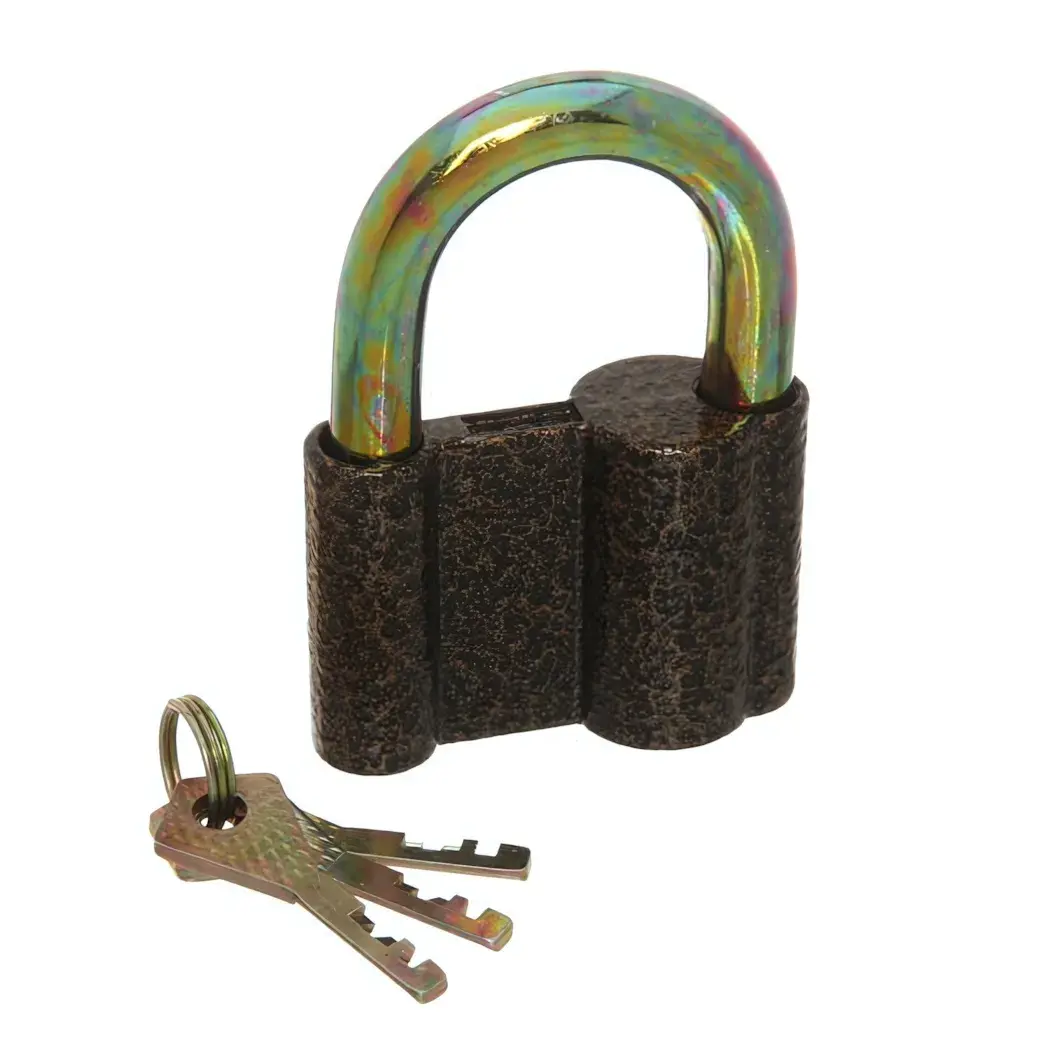 Прочный навесной замок с радужной дужкой сочетает функциональность и визуальную привлекательность. Идеально подходит для защиты гаражей, складов, чемоданов и шкафов благодаря усиленной металлической конструкции.