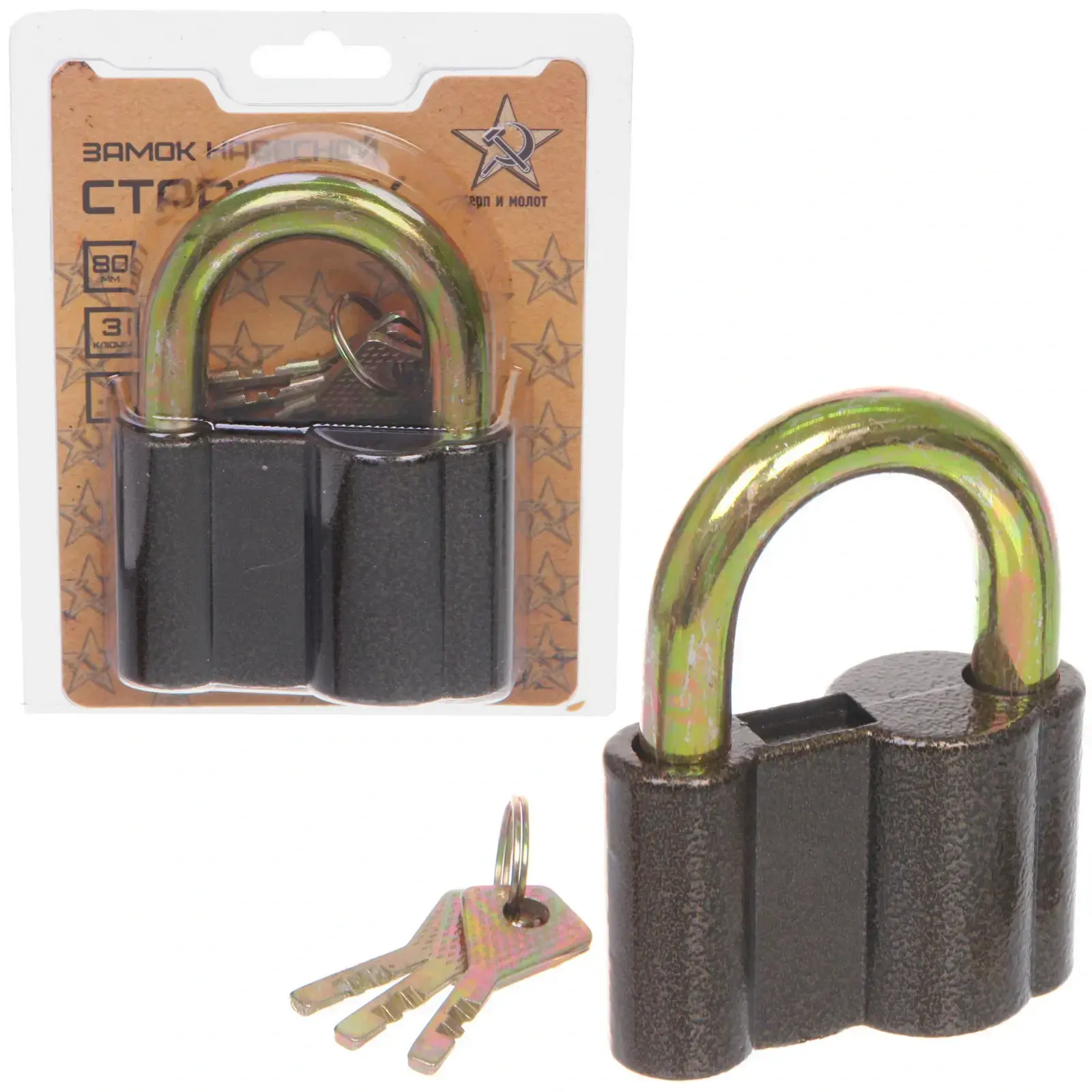 Замок навесной «Стражник» с автозапиранием, 80 мм, металл, 3 ключа, черный корпус, золотистая дужка