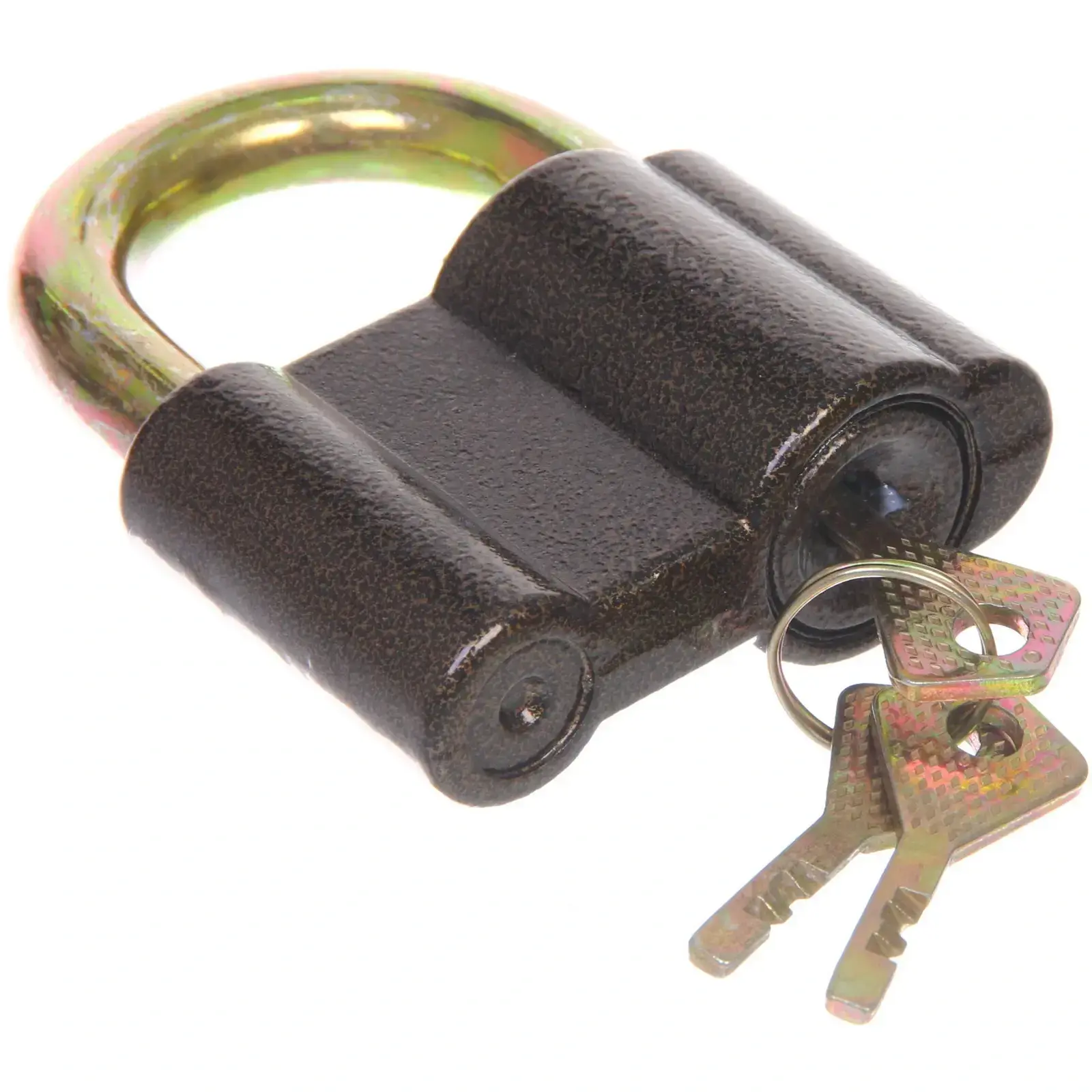 Корпус из цельного металла толщиной 3 мм и литой дужкой диаметром 12 мм обеспечивают устойчивость к взлому. Специальное порошковое покрытие защищает от царапин и выцветания. Совместим со стандартными дверными проушинами шириной до 35 мм.