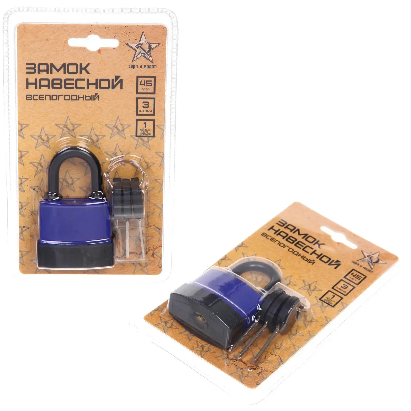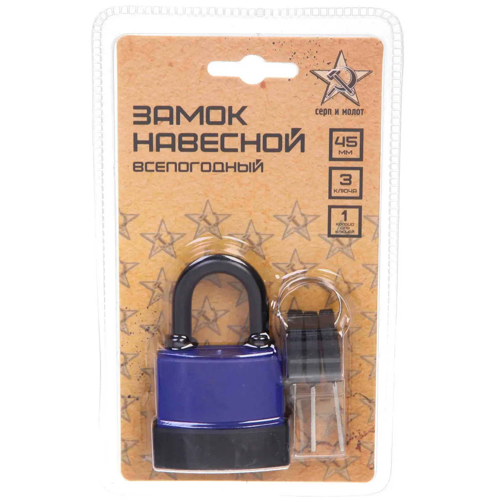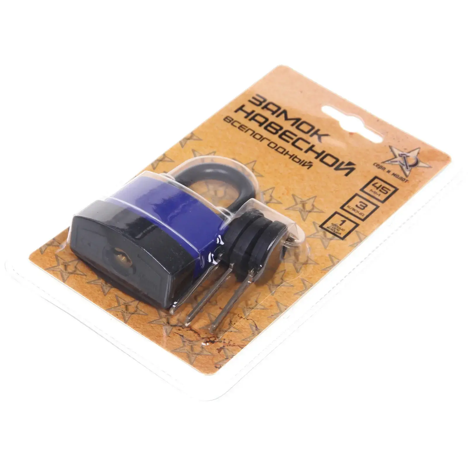 Замок навесной «Серп и молот», всепогодный, 45 мм, синий, 3 ключа, металл
