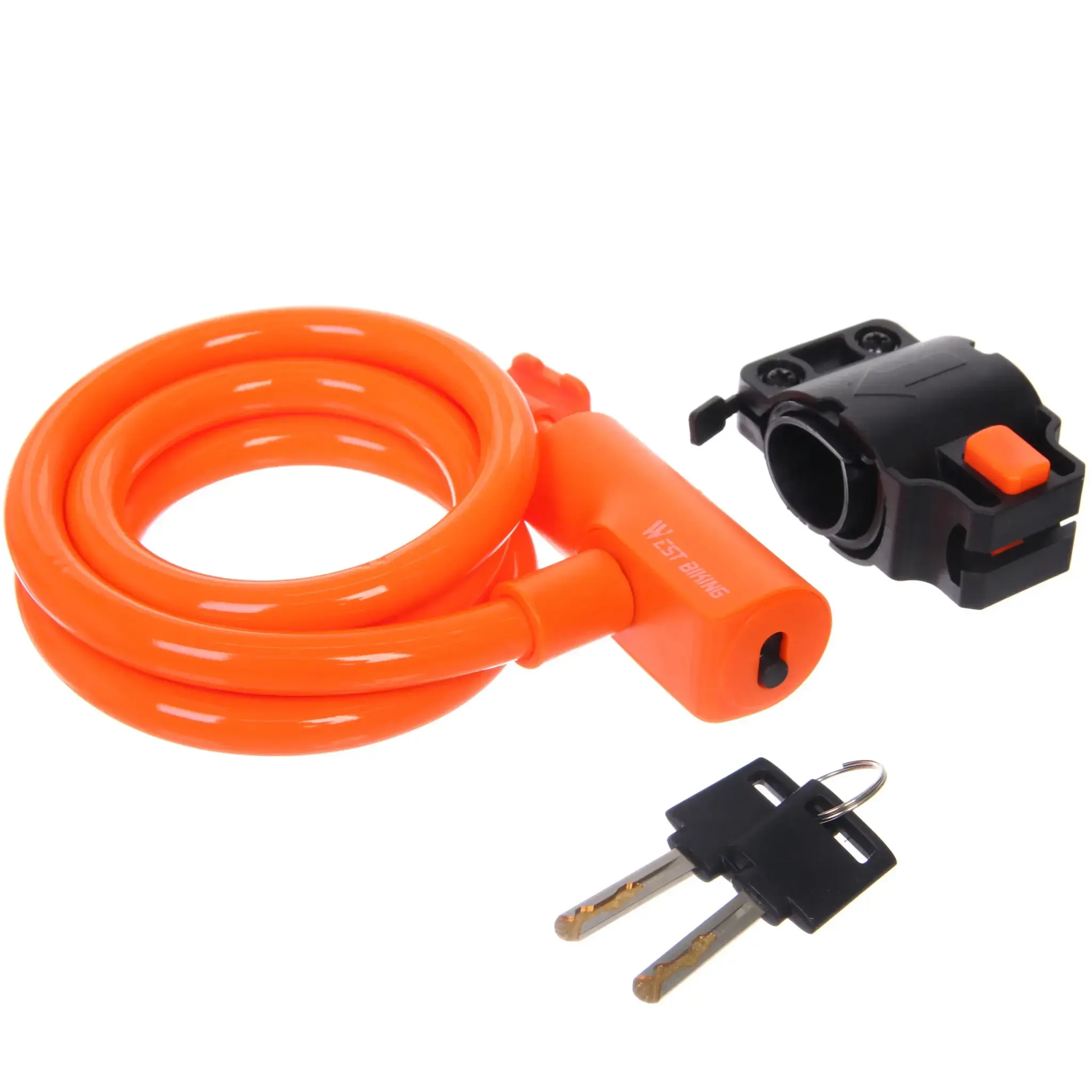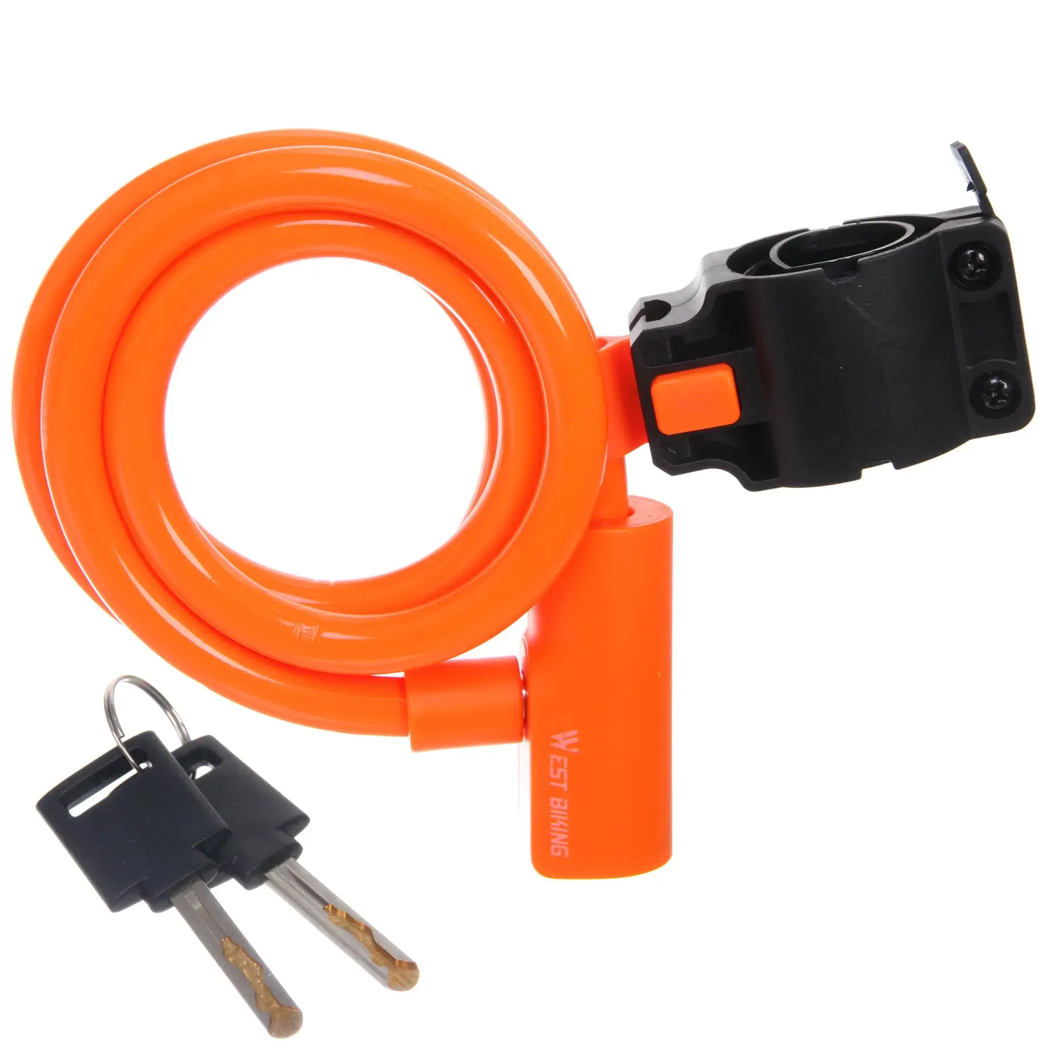 Велосипедный замок тросовый 'West biking' станет вашим верным защитником в городских условиях. Его яркий оранжевый цвет не только привлекает внимание, но и служит отличным анти-воровским сигналом.