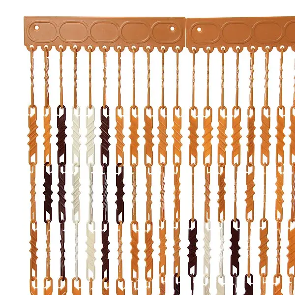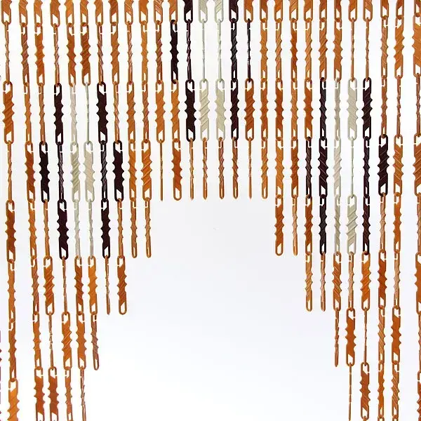 Занавес состоит из гибких пластиковых цепочек разной длины, создающих эффект падающего каскада. Элементы различной формы - прямые и зигзагообразные - формируют динамичный рисунок. Отгружается один товар, цветовая комбинация определяется случайным образом из доступного ассортимента.