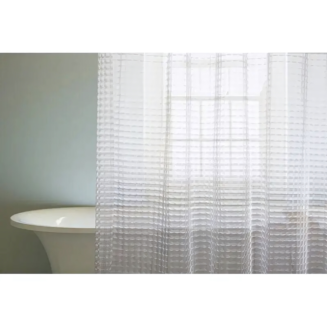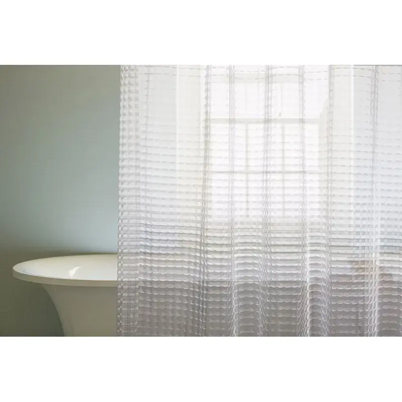 Прозрачная занавеска для душа с эффектом калейдоскопа превратит обычную гигиеническую процедуру в эстетическое удовольствие. Объёмный рисунок создаёт игру света и теней, сохраняя приватность без ощущения замкнутого пространства.