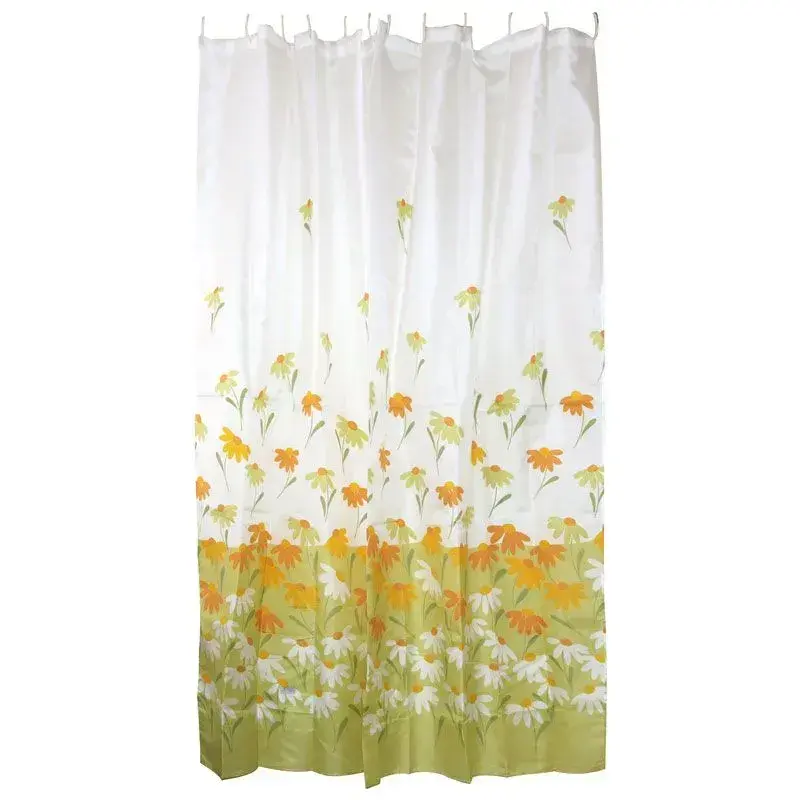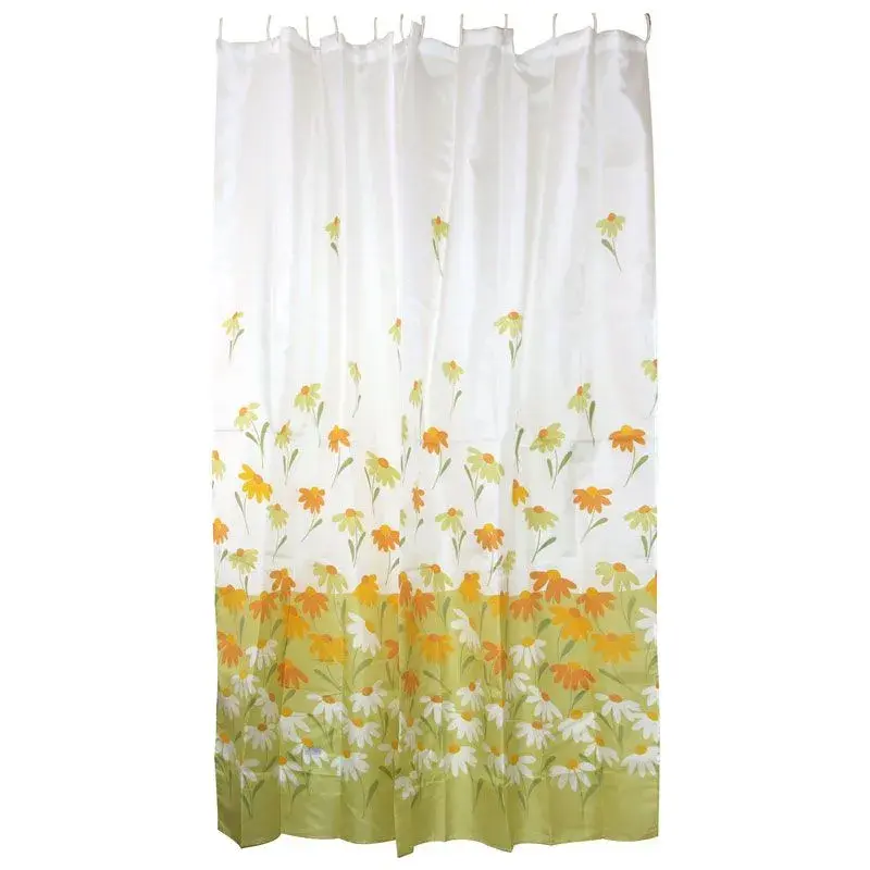 Добавьте уюта в интерьер с влагостойкой занавеской из полиэстера. Яркий цветочный принт в оранжевых, желтых и белых тонах создаст атмосферу свежести, а прочный материал защитит от брызг и пара.