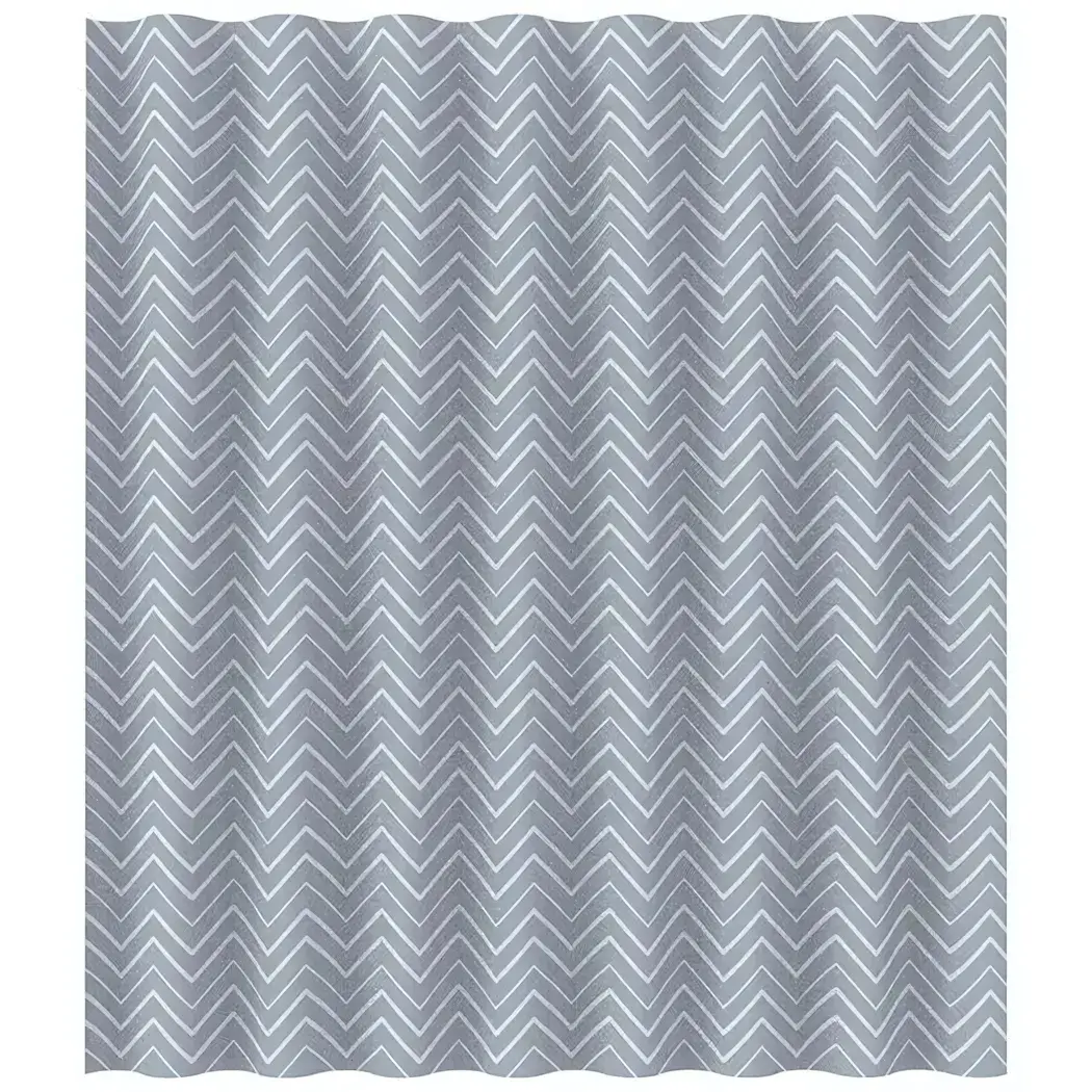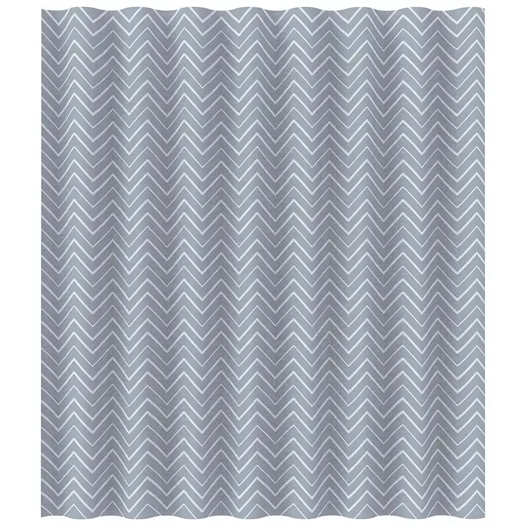 Плотная занавеска для ванной комнаты с геометрическим узором создаст акцент в интерьере и надежно разделит пространство. Светло-серый фон с контрастными зигзагами визуально расширяет помещение, сохраняя атмосферу чистоты и свежести.