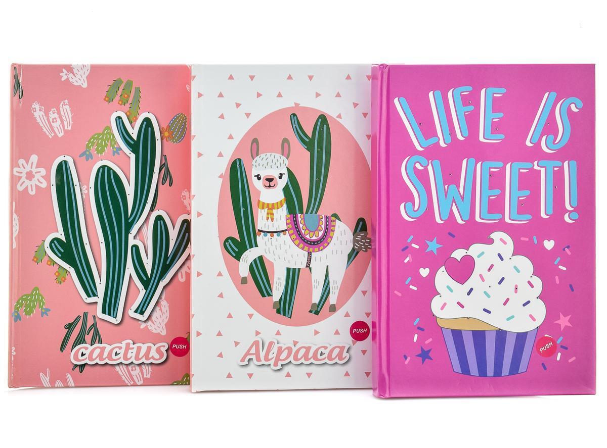 Эта оригинальная записная книжка в твердом переплете станет вашим незаменимым помощником для записи важных мыслей, идей и скетчей. Яркие и симпатичные рисунки на обложке поднимут настроение, а встроенная подсветка с лампочками (батарейки в комплекте) позволит комфортно работать даже в условиях недостаточного освещения.