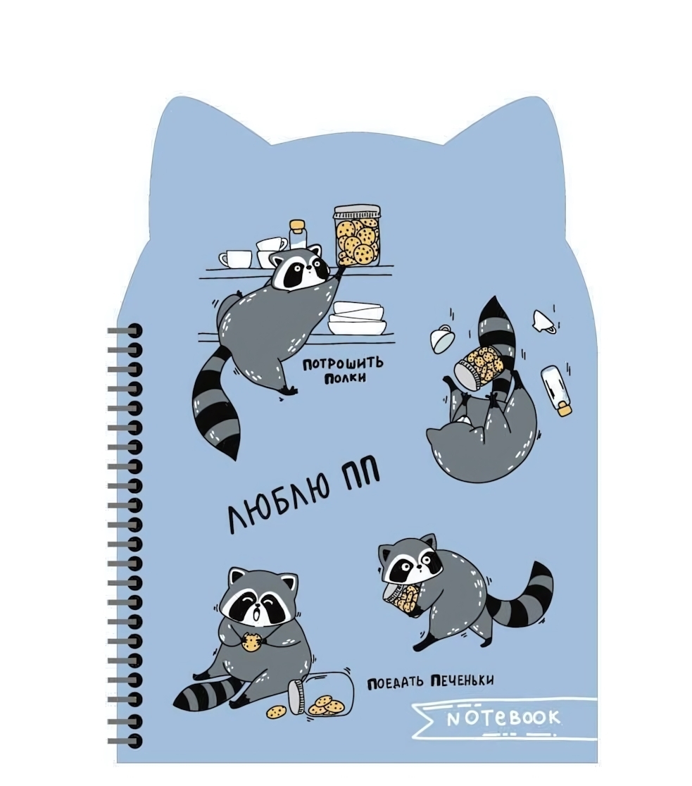 Записная книжка 'Правильное питание' станет незаменимым аксессуаром для тех, кто ценит стиль и практичность. Уникальный дизайн в виде кошачьих ушек и забавные иллюстрации енотов создают позитивное настроение при каждом использовании.