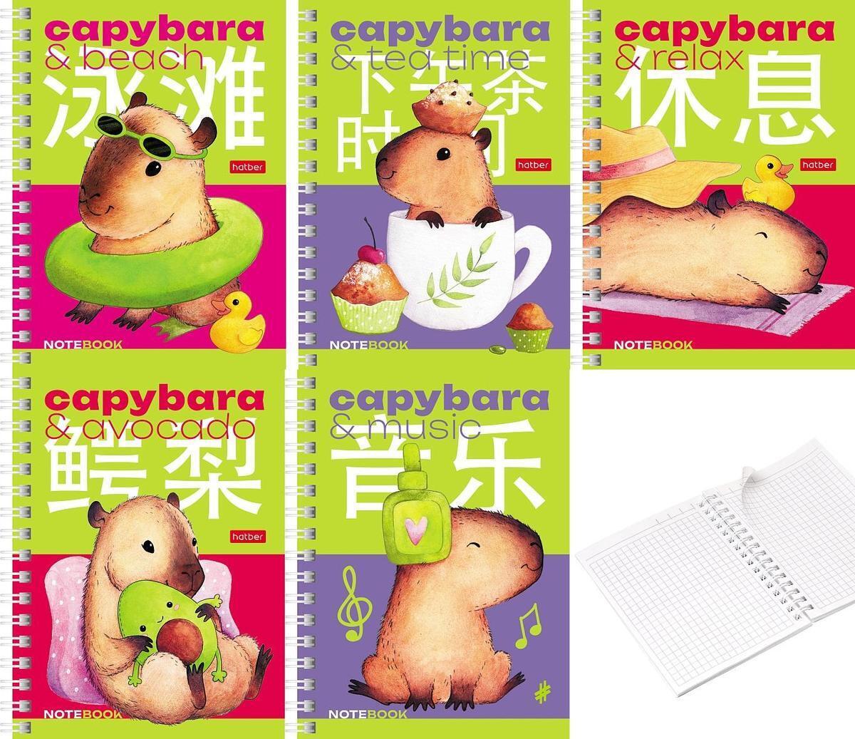 Записная книжка А6, 80л клетка, обложка 'Капибара_day', мелованный картон, гребень