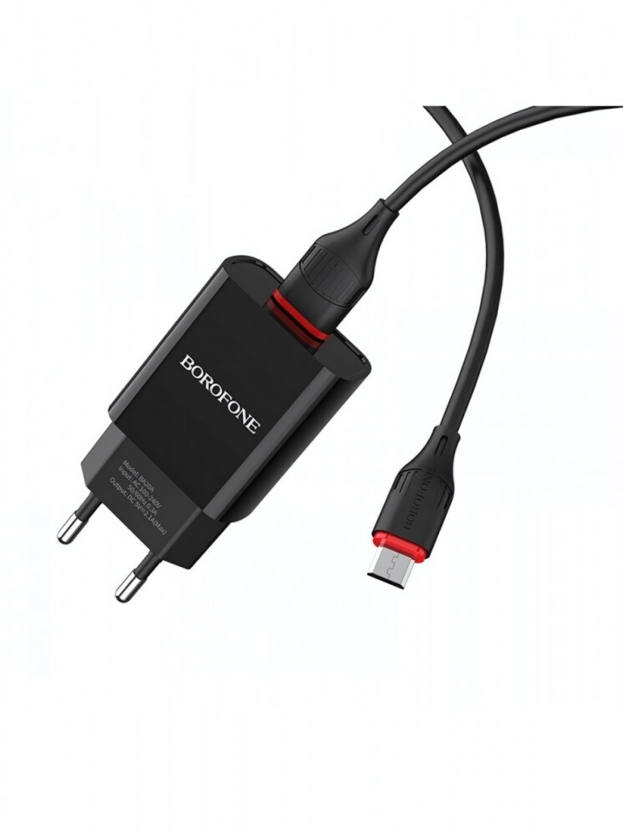 Зарядное устройство Borofone BA20A, 2.1A, USB + microUSB, черный