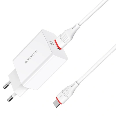 Зарядное устройство Borofone BA21A 18W QC3.0 3A USB + кабель Type-C White