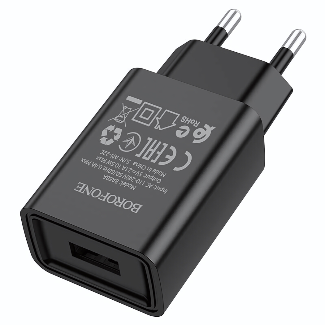 Зарядное устройство Borofone BA68A, USB 2.1A, черное, компактное для смартфонов