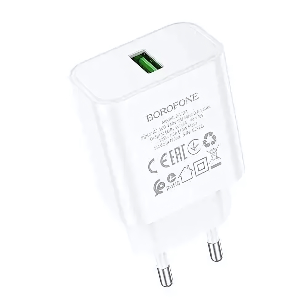 Адаптер оснащен одним USB-портом с зелёной вставкой, рассчитан на входное напряжение AC 100-240V и выходные параметры 5V/3A, 9V/2A, 12V/1.5A. Это гарантирует стабильную работу и долговечность вашего устройства. Отличный выбор для тех, кто ценит скорость, удобство и надежность.