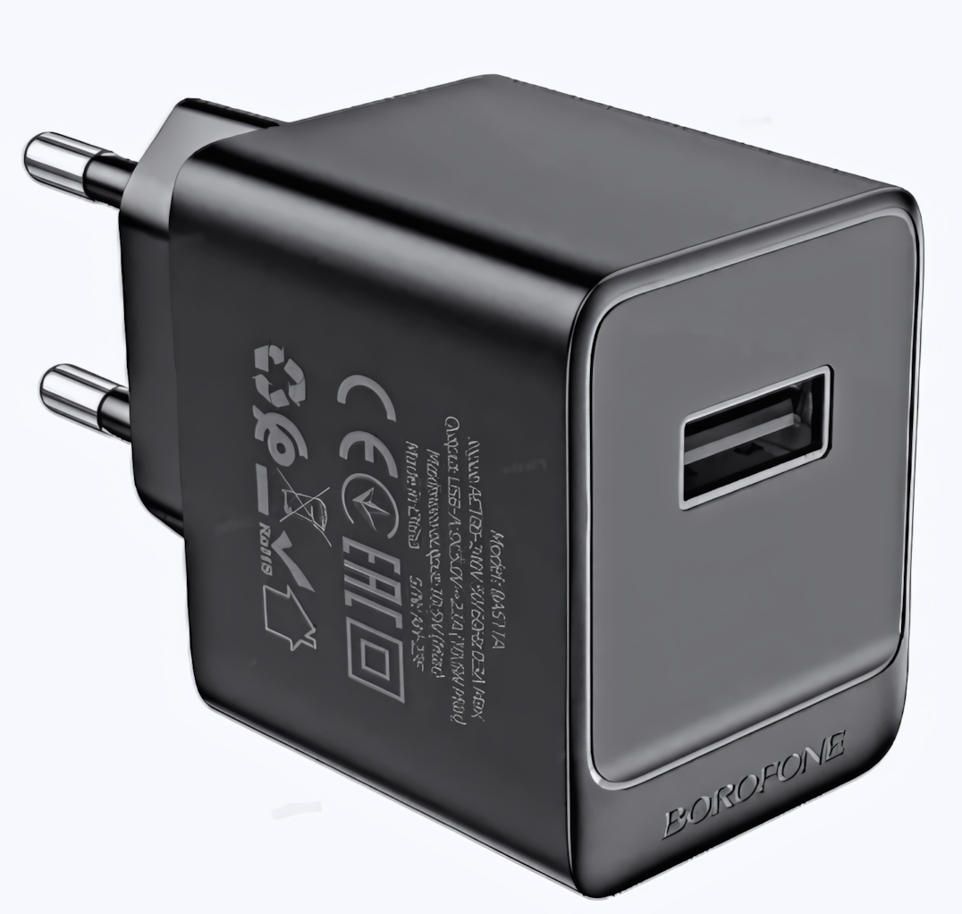 Зарядное устройство Borofone BAS11A, 2.1A USB, черный, компактное, надежное