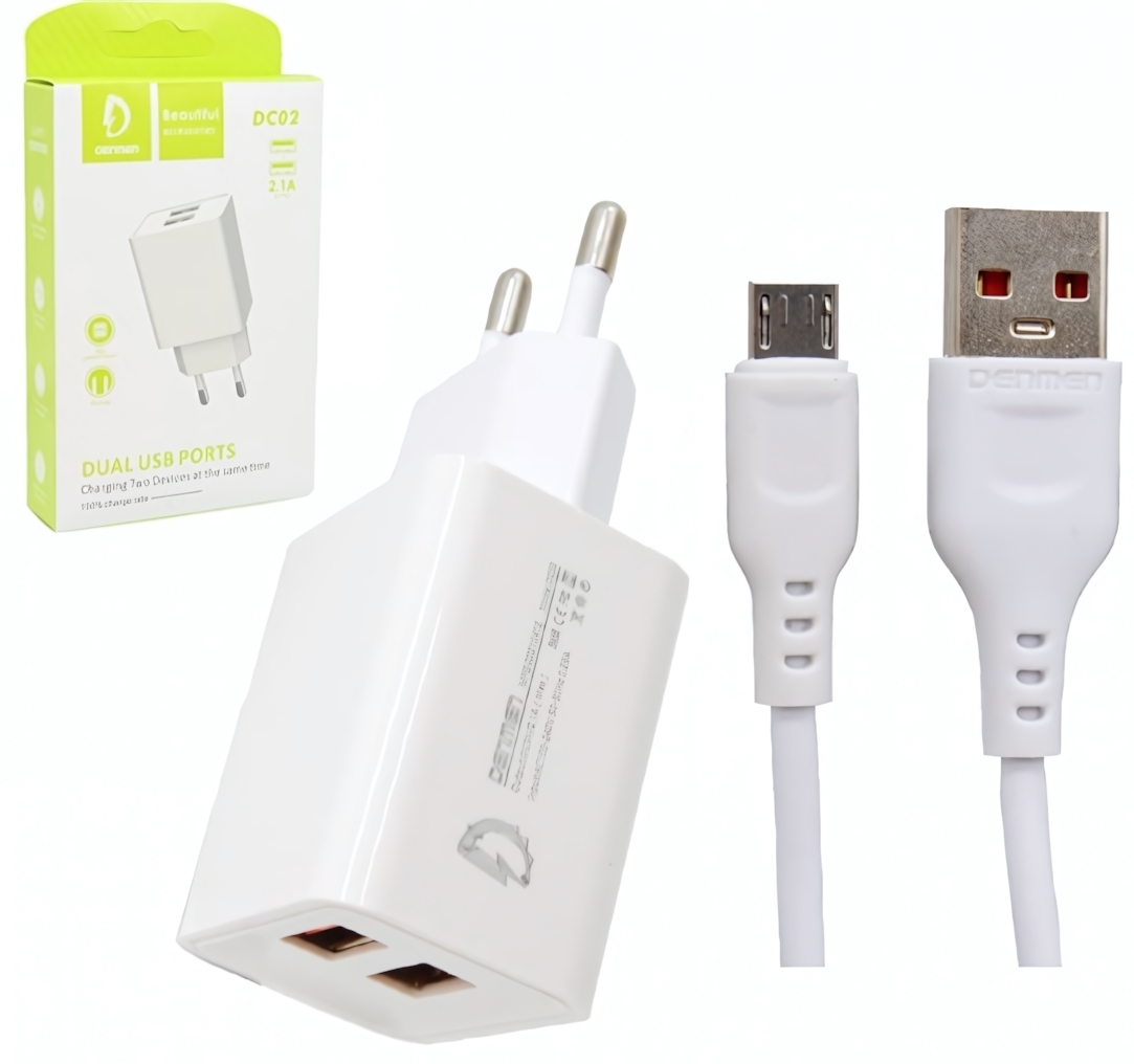 Позаботьтесь о своих гаджетах с зарядным устройством DENMEN DC02. Эта компактная модель в белом цвете обеспечивает надежную зарядку сразу двух устройств благодаря двум USB-портам и мощности 2.1A.