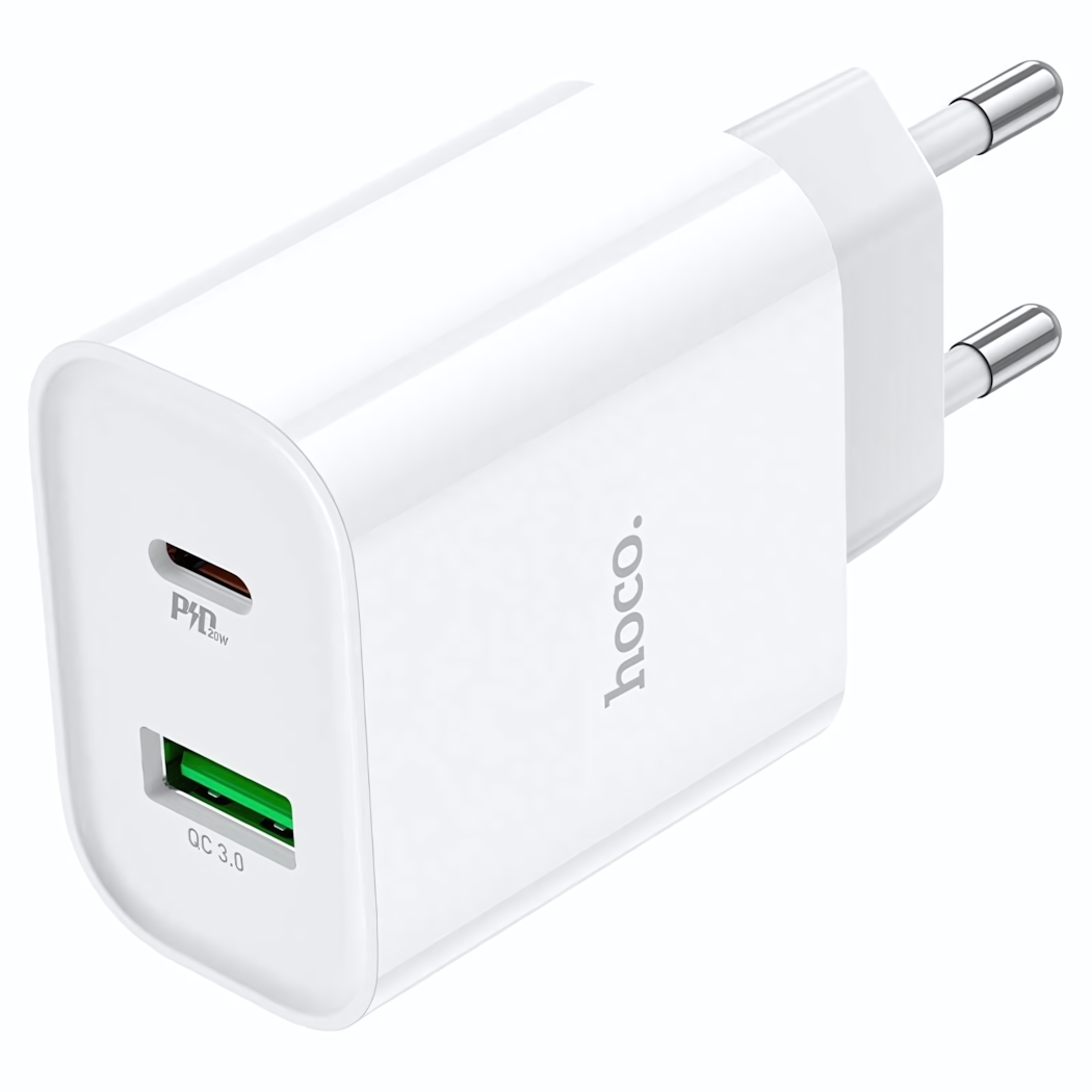 Зарядное устройство HOCO C80A Plus, белое, PD20W+QC3.0, порты Type-C/USB-A