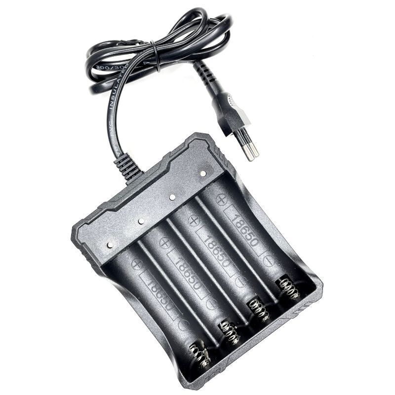 Зарядное устройство для аккумуляторов 18650, 4 гнезда, черный, пластик, 104х89х27мм