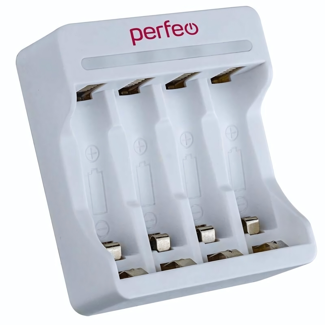 Зарядное устройство «Perfeo PF-UN-410»: 4 слота, USB-питание, для Ni-MH/Cd AA/AAA, белый