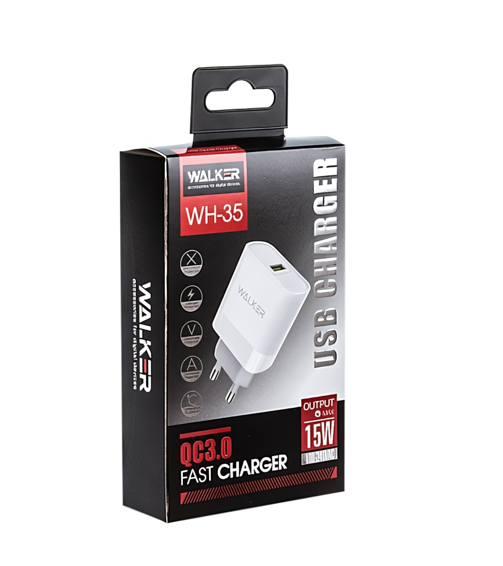 Зарядное устройство WALKER WH-35, QC 3.0, быстрая зарядка 15Вт, USB, 3А, белое