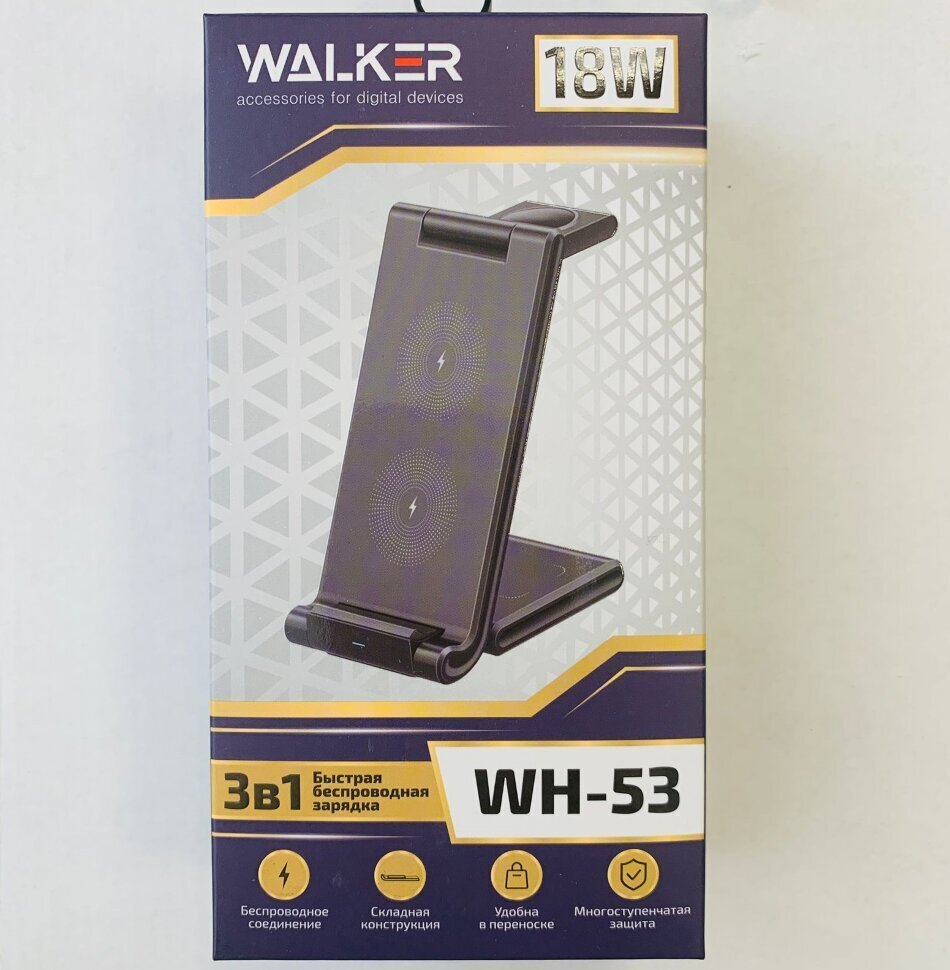 Ощутите максимальный комфорт и свободу, экономьте время с беспроводным зарядным устройством 3в1 модели "WH-53". Устройство помогает заряжать сразу несколько гаджетов, избавляет от лишних проводов и поддерживает чистоту на рабочем столе. Технология быстрой зарядки мощностью 18Вт обеспечивает оперативное восстановление энергии ваших устройств.