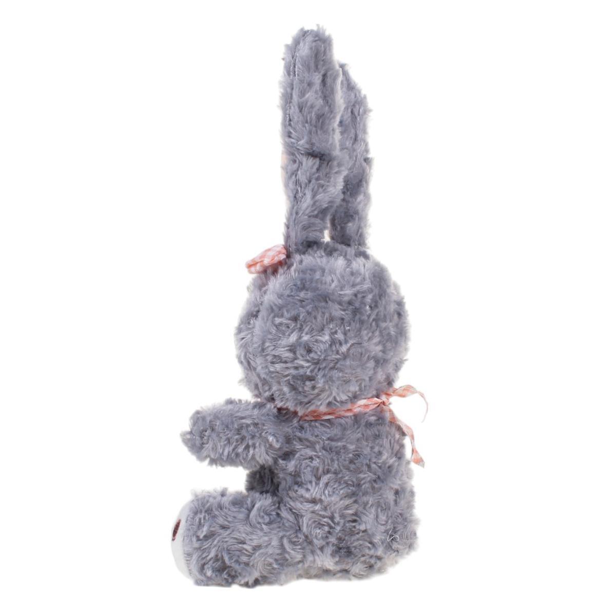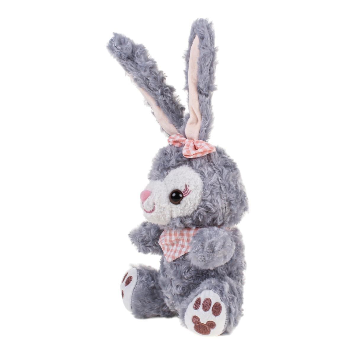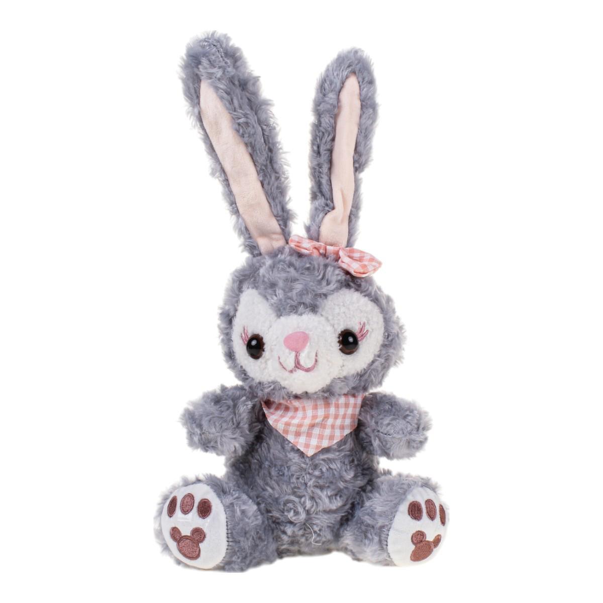 Мягкий заяц-кролик "Hand", 18x24x13 см, серый с розовыми ушками и бантом