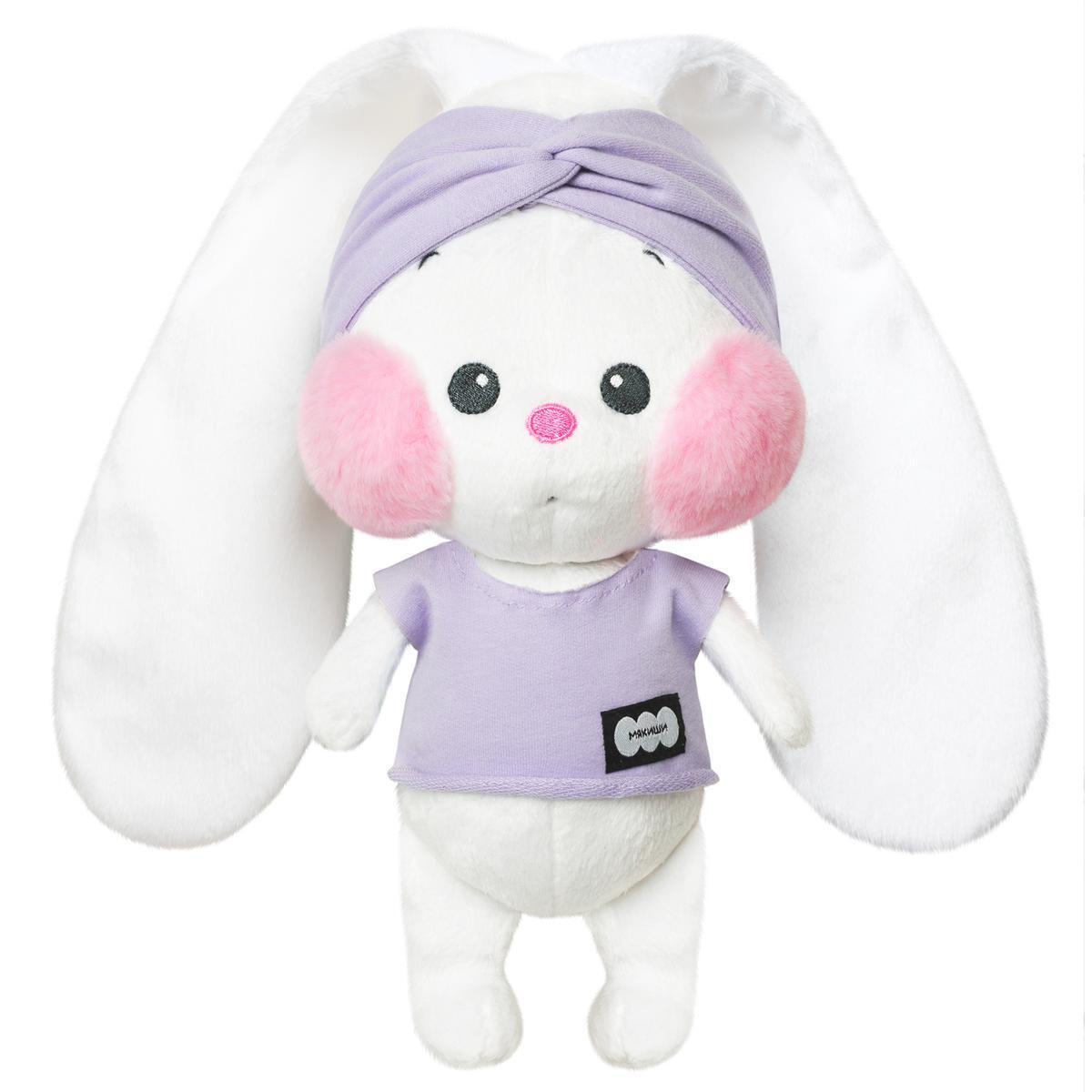 Игрушка выполнена в белом цвете с элементами розового и фиолетового, что делает ее универсальной для любого интерьера. Большие ушки и округлая голова добавляют ей очарования. Размеры игрушки не указаны, но она идеально подходит для объятий и игр. Зайка Айя 'на йоге' — это не просто игрушка, а верный друг вашего ребенка на долгие годы!