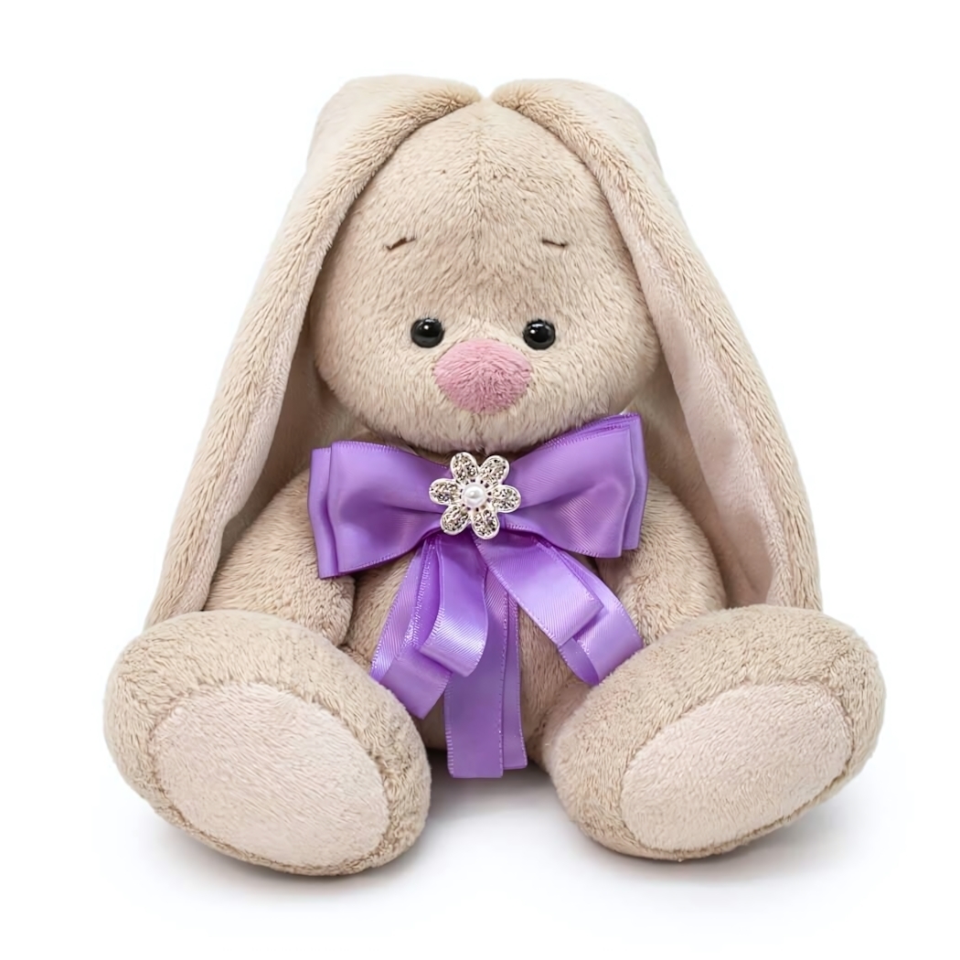 Зайка Ми — это не просто игрушка, это символ уюта и тепла, который станет идеальным подарком для вашего малыша. С шикарным атласным бантиком цвета лаванды и изысканной брошкой со стразами, эта игрушка привнесет радость и комфорт в каждый дом.