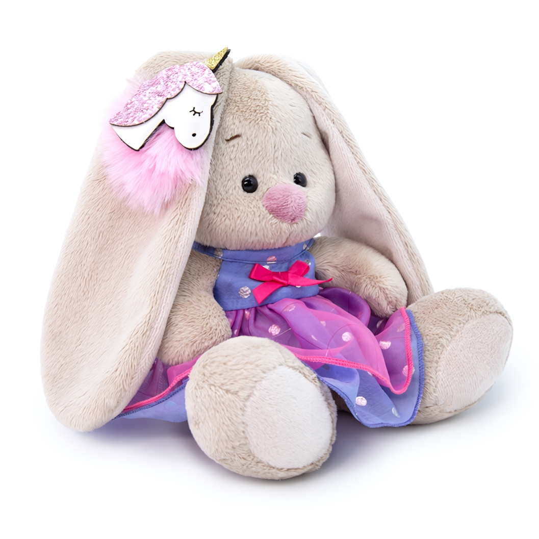 Подарите своему ребенку радость и комфорт с этой милой мягкой игрушкой Зайка Ми. Она станет не только верным другом, но и стильным аксессуаром для игр и обнимашек. Яркое платье с единорогом на ушке добавляет особый шарм и делает игрушку уникальной.
