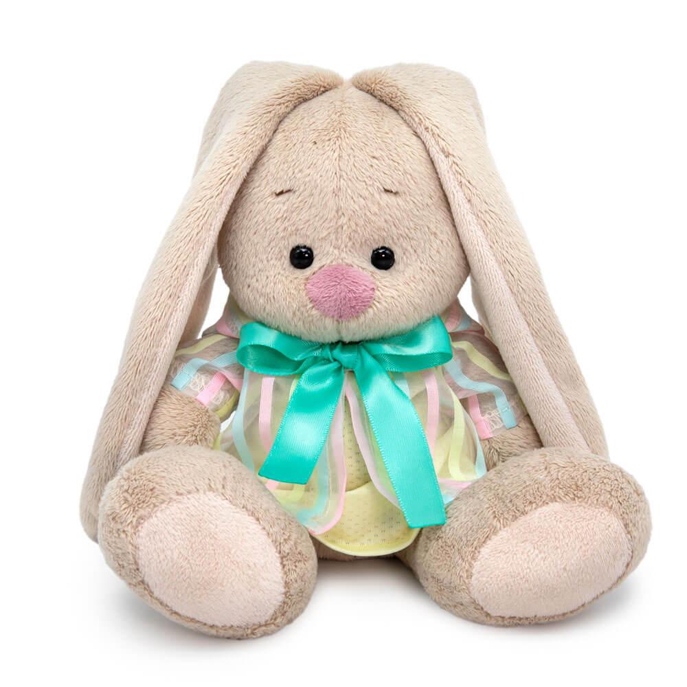 Размер игрушки составляет 15 см, что делает ее удобной для переноски и хранения. Сарафан выполнен из спортивного трикотажа, а курточка из органзы, что придает ей легкость и воздушность. Зайка Ми станет отличным подарком на любой праздник или просто так, чтобы порадовать вашего малыша.