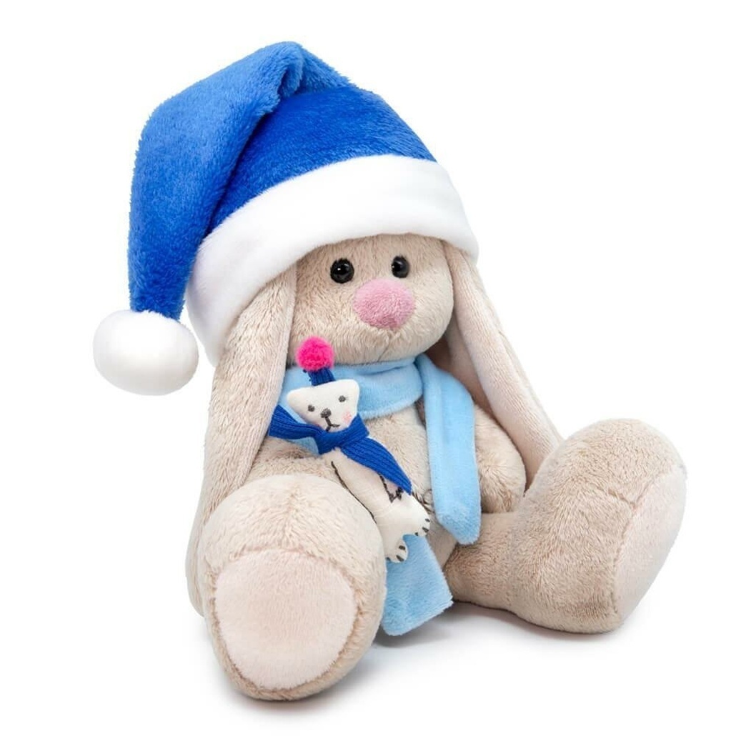 Зайка Ми в синем колпачке, мягкая игрушка 15 см, нежный плюш, брошь мишка, уют и тепло для малышей
