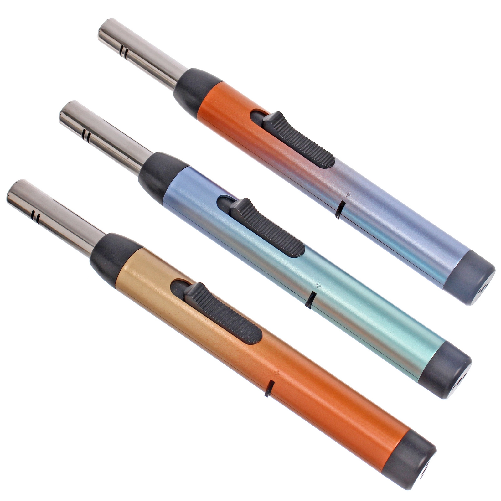 Зажигалка подходит для розжига газовой плиты и других бытовых приборов. Рифлёный ползунок обеспечивает уверенное нажатие и контроль при включении. Модель рассчитана на многократное использование и легко заправляется газом, что делает её экономичным выбором для повседневных задач.