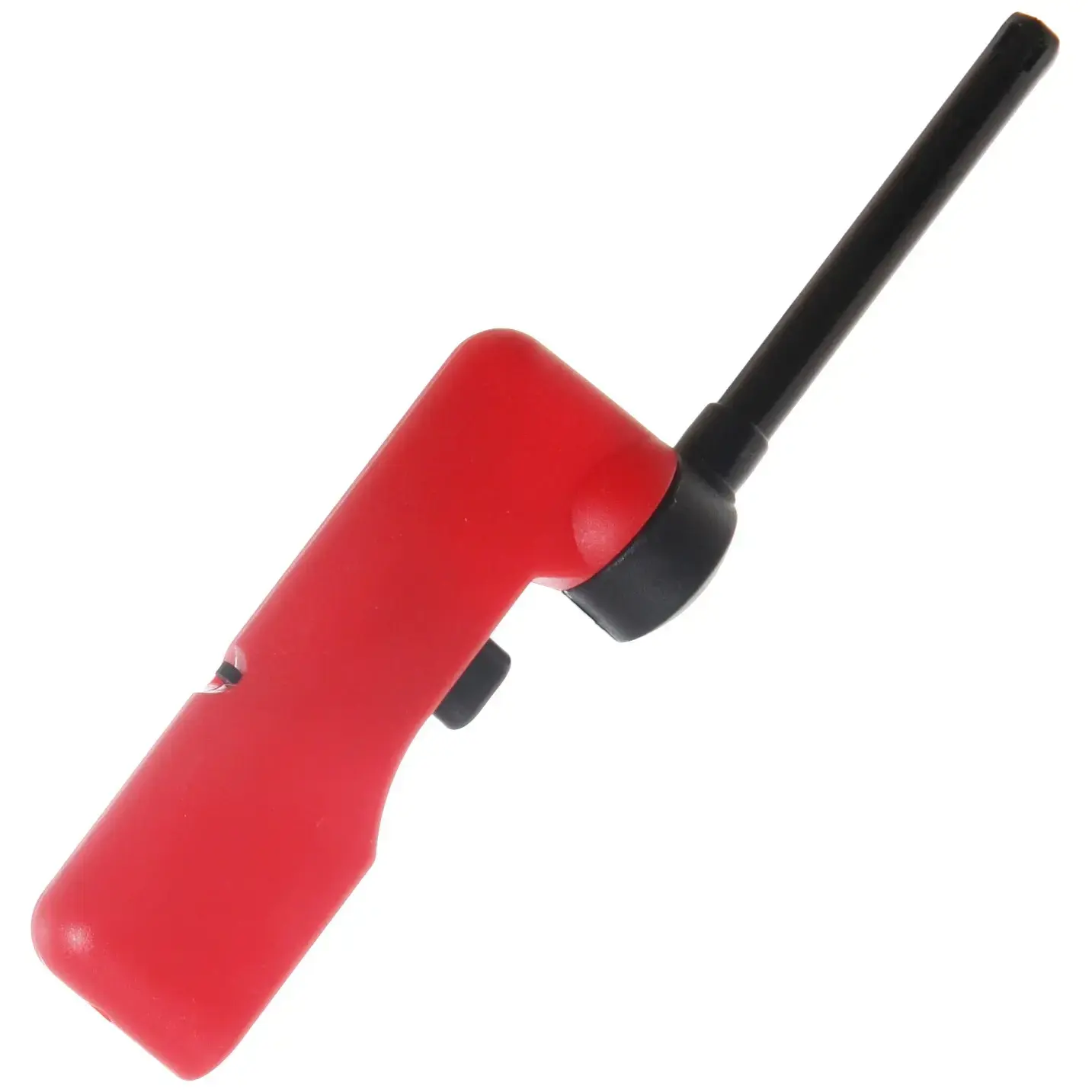 Зажигалка выполнена из качественных материалов: металл и пластик, что обеспечивает долговечность и надежность. Красная пластиковая рукоятка с черной частью в нижней части обеспечивает удобный захват и легкость в управлении. Угловатая форма зажигалки позволяет легко направлять пламя в нужное место, что делает ее идеальной для использования на кухне.