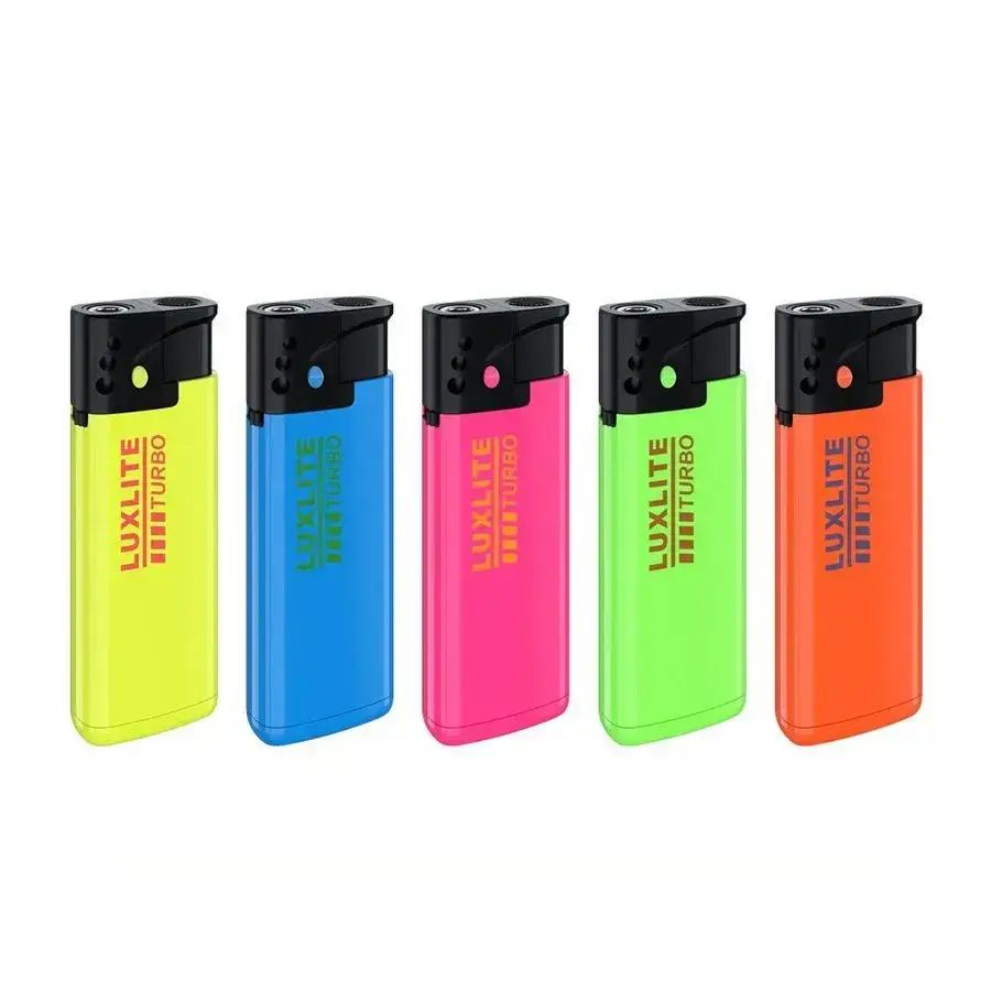 Зажигалка турбо LUXLITE T-TURBO с LED подсветкой, комплект 50 шт, цвета в ассортименте