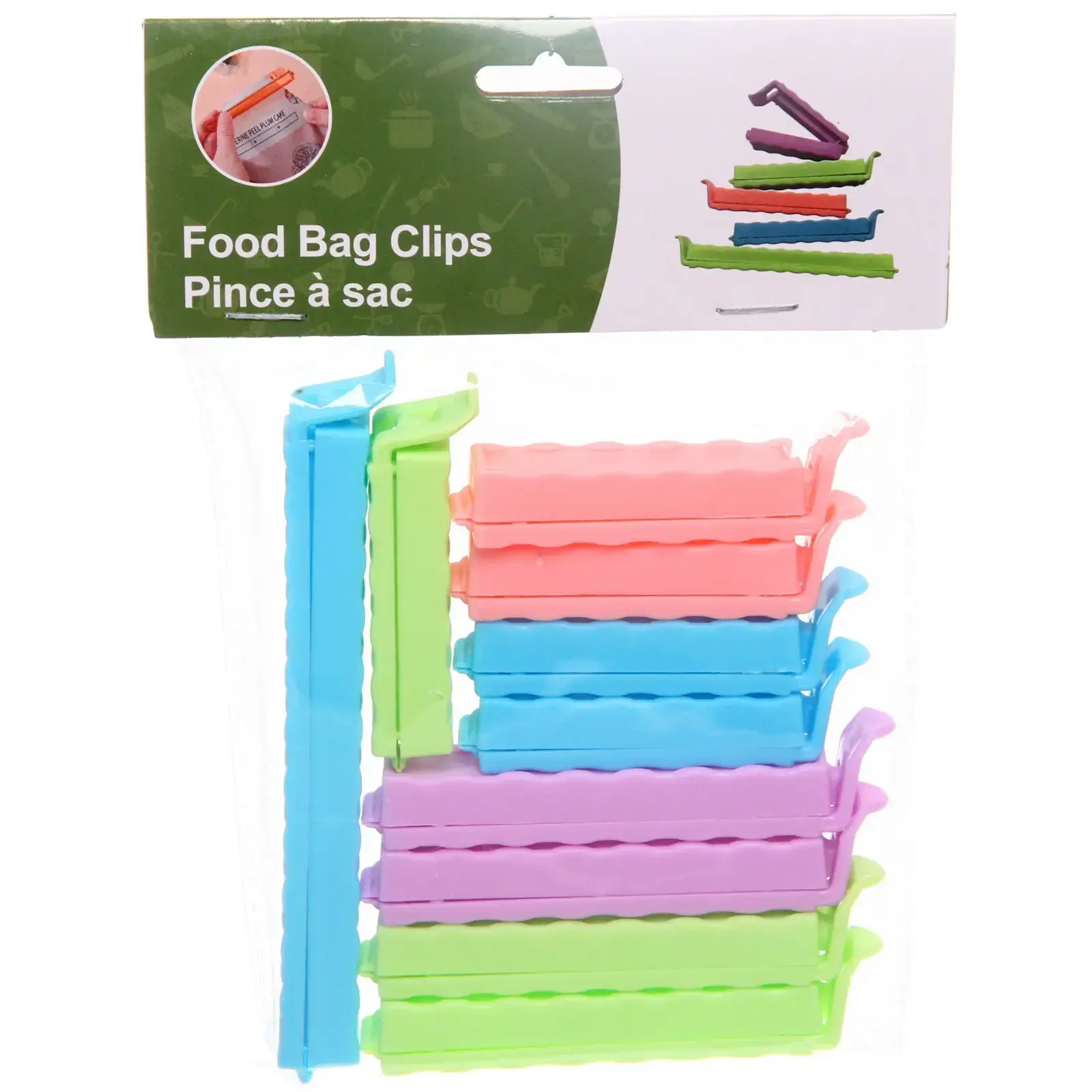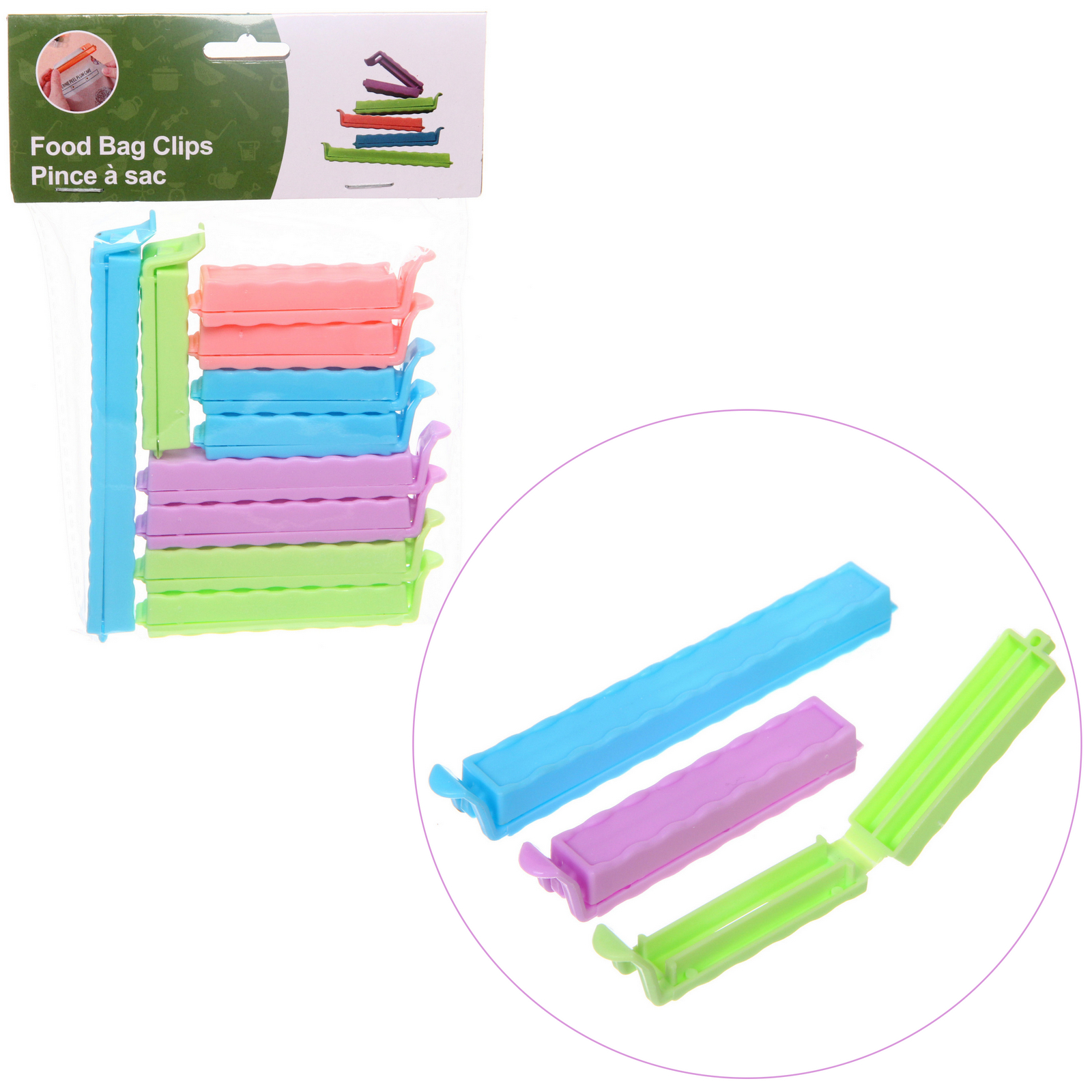 Зажимы для пакетов «Ассорти», 10 шт: 7.5 см (4шт), 6 см (5шт), 11 см (1шт), пластик, 6 цветов