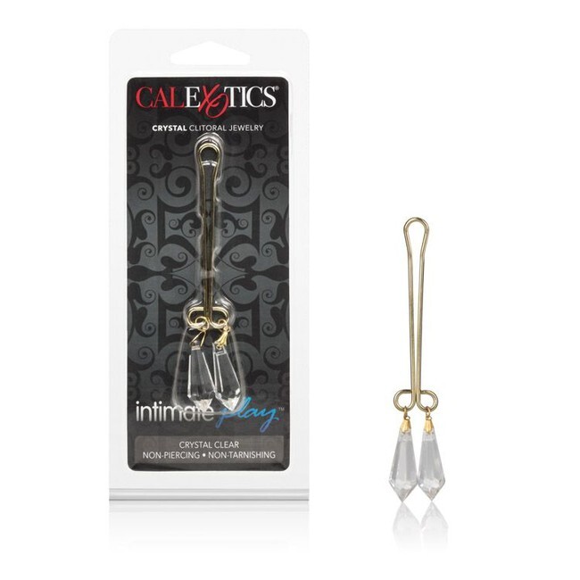Зажим для половых губ с кристаллами, золотой/прозрачный, длина 11,5см