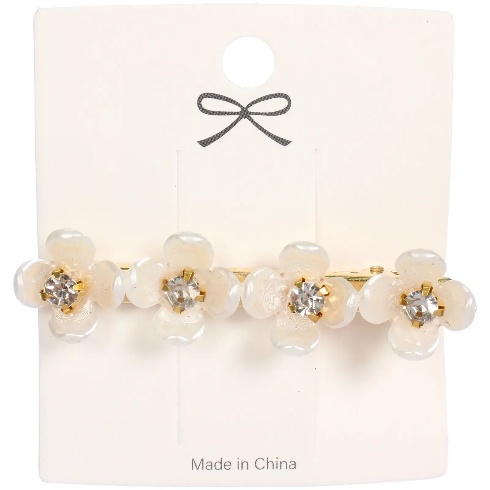 Зажим для волос 'МАНГО', белый, 6*1.5см, металлический, со стразами