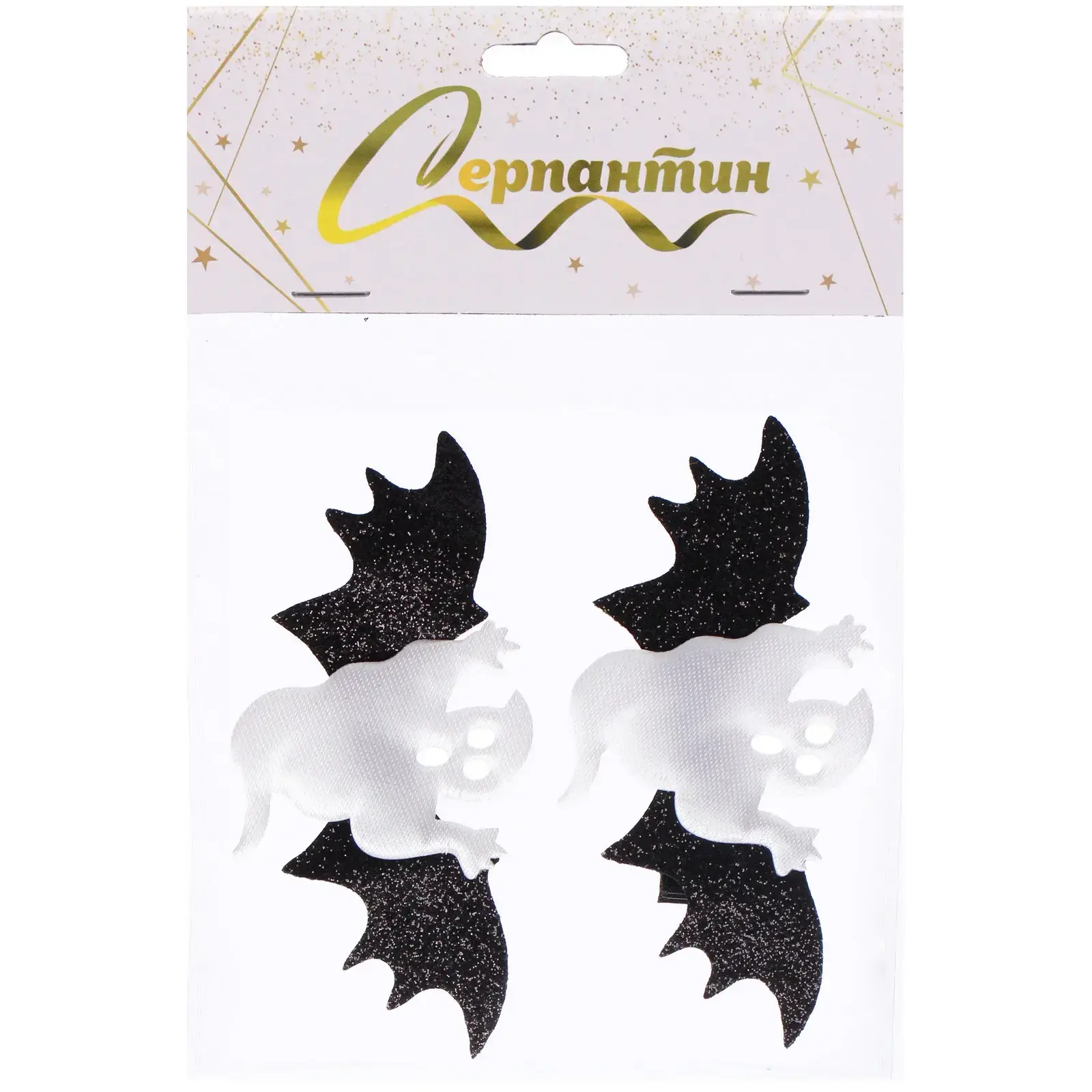 В наборе вы получите два зажима, каждый из которых выполнен в виде призрака с черными блестящими крыльями. Размеры зажимов компактные, что позволяет удобно носить их в сумочке. Эти аксессуары станут отличным дополнением к вашему образу и помогут создать атмосферу веселья и праздника.