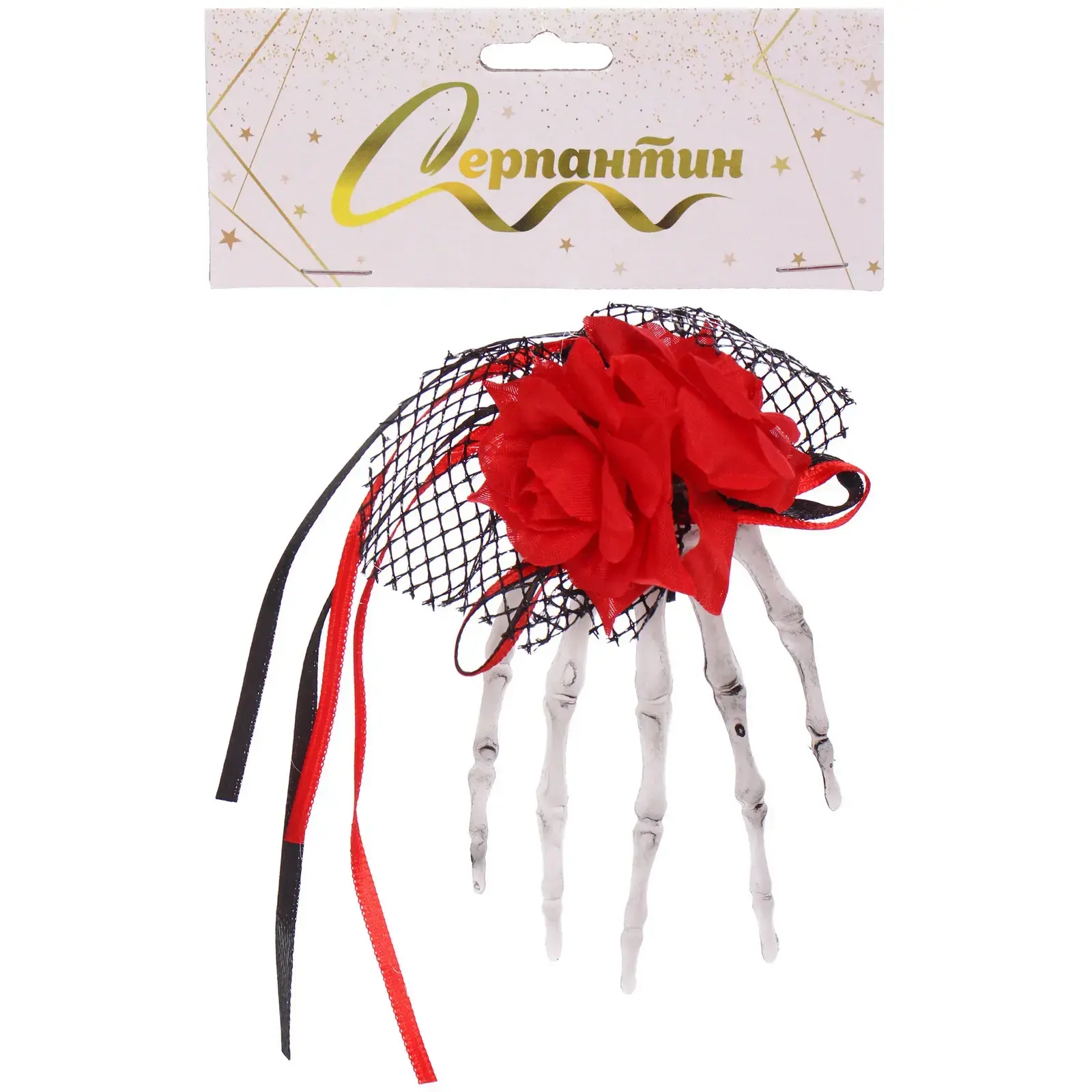 Зажим изготовлен из прочного пластика и текстиля, что обеспечивает его долговечность. Размеры не указаны, но аксессуар подходит для большинства женщин. Яркие красные цветы и черная сетка делают его универсальным для различных стилей и образов. Не упустите возможность выделиться на празднике с этим уникальным аксессуаром!