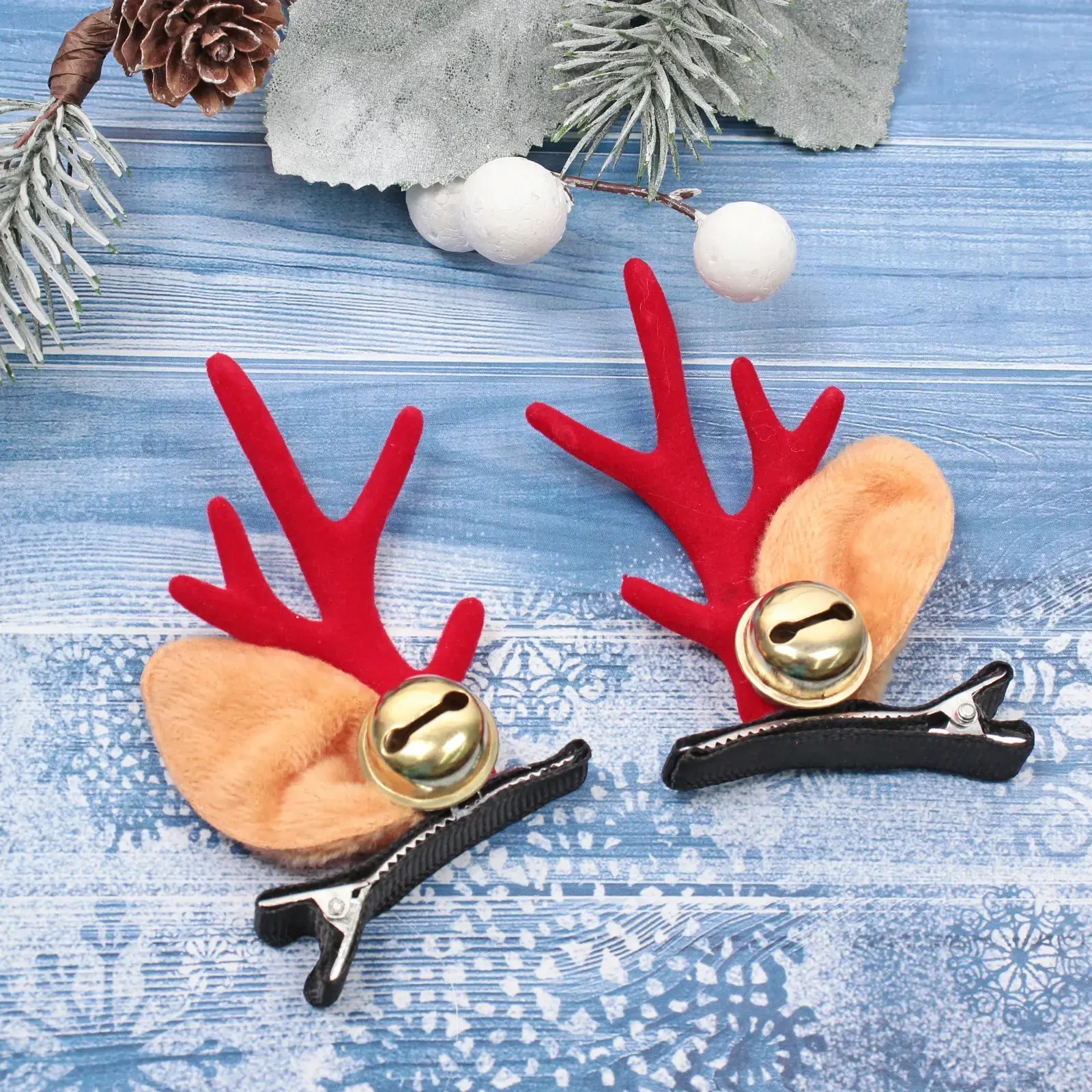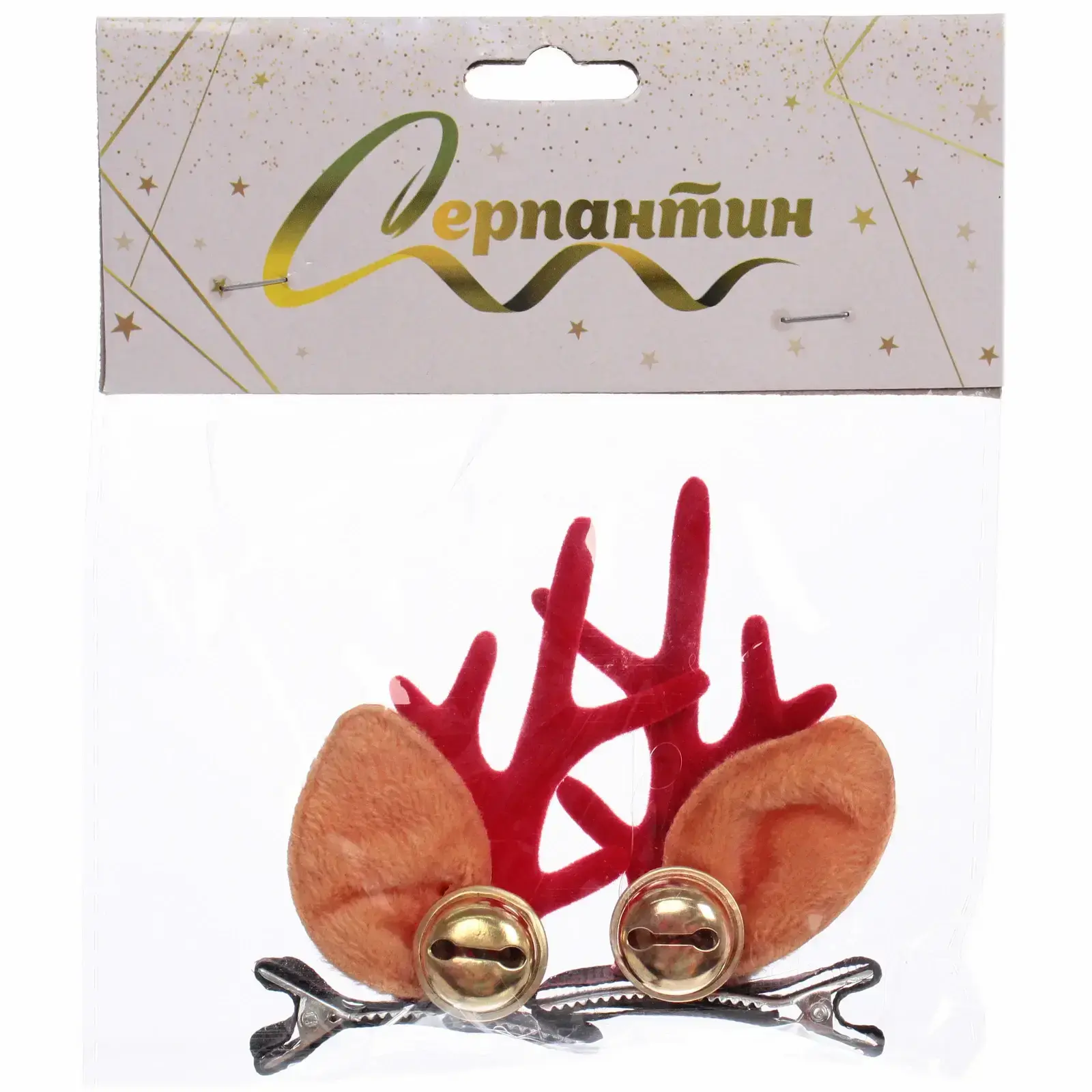 Эти зажимы выделяются своим уникальным дизайном в виде рожков оленя, выполненных из качественных материалов. Красные рожки и светло-коричневые ушки создают яркий контраст, а золотистые колокольчики добавляют праздничного настроения. Они не только красивы, но и практичны: легкие и удобные в использовании, они не будут давить на голову и не испортят прическу.