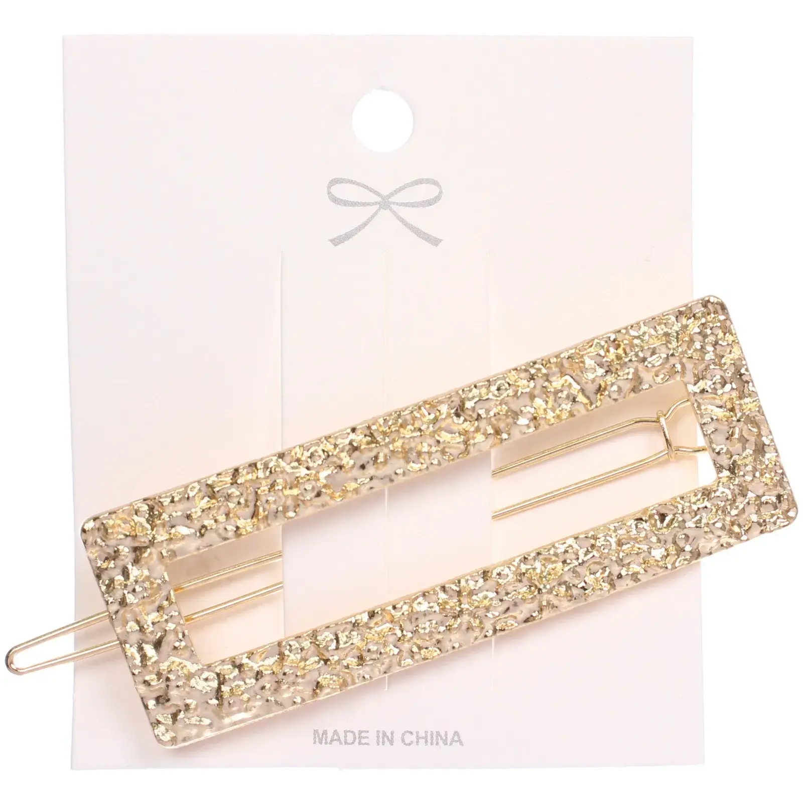 Создайте стильный образ с зажимом для волос «АТЛАНТА», который станет вашим незаменимым аксессуаром. Этот зажим не только надежно фиксирует волосы, но и добавляет изысканности вашему стилю благодаря своему блестящему золотому цвету и прямоугольной форме. Он идеально подходит для создания различных причесок, будь то повседневный или вечерний образ.