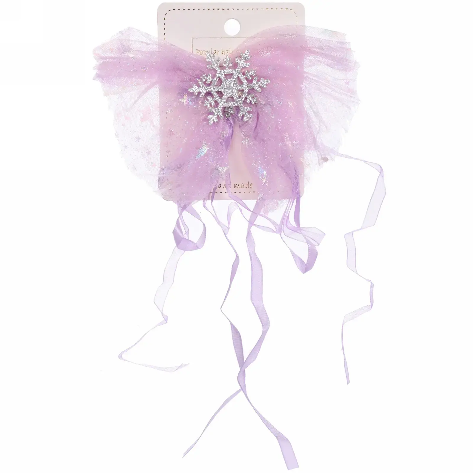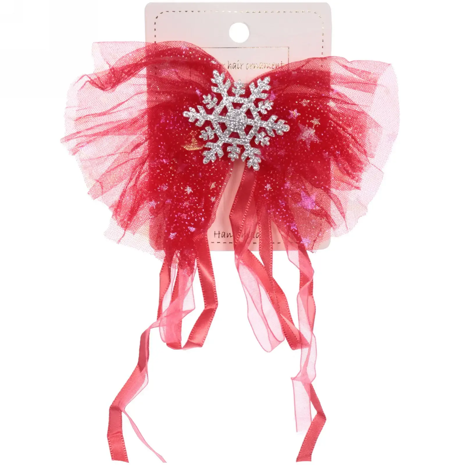 Превратите любую прическу в новогоднее чудо с набором из 6 ярких бантиков. Каждый аксессуар украшен стильной серебристой снежинкой, которая переливается при любом освещении.